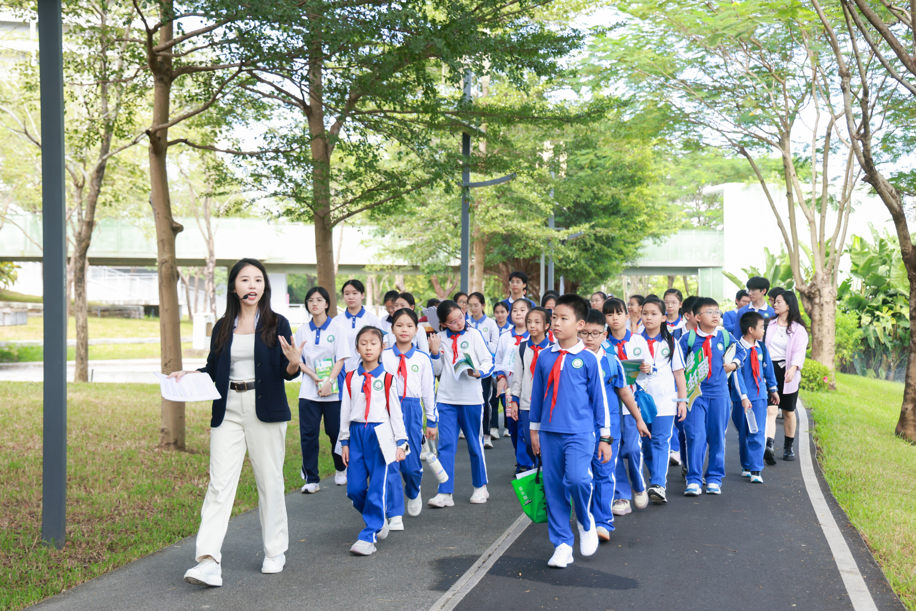 该校外课堂计划将深圳国际低碳城等绿色地标串联成线,打造出移动化、场景化的环保课堂。学生乘坐主题公交出发,沿途探寻气膜馆“两个月建成、可循环使用”的低碳奥秘,触摸会展中心立体化绿植墙,亲身体验声控节能喇叭的科技魅力,在微藻氧吧观察绿色藻液净化空气的神奇过程,在未来大厦感受 “光储直柔”技术的前沿力量。