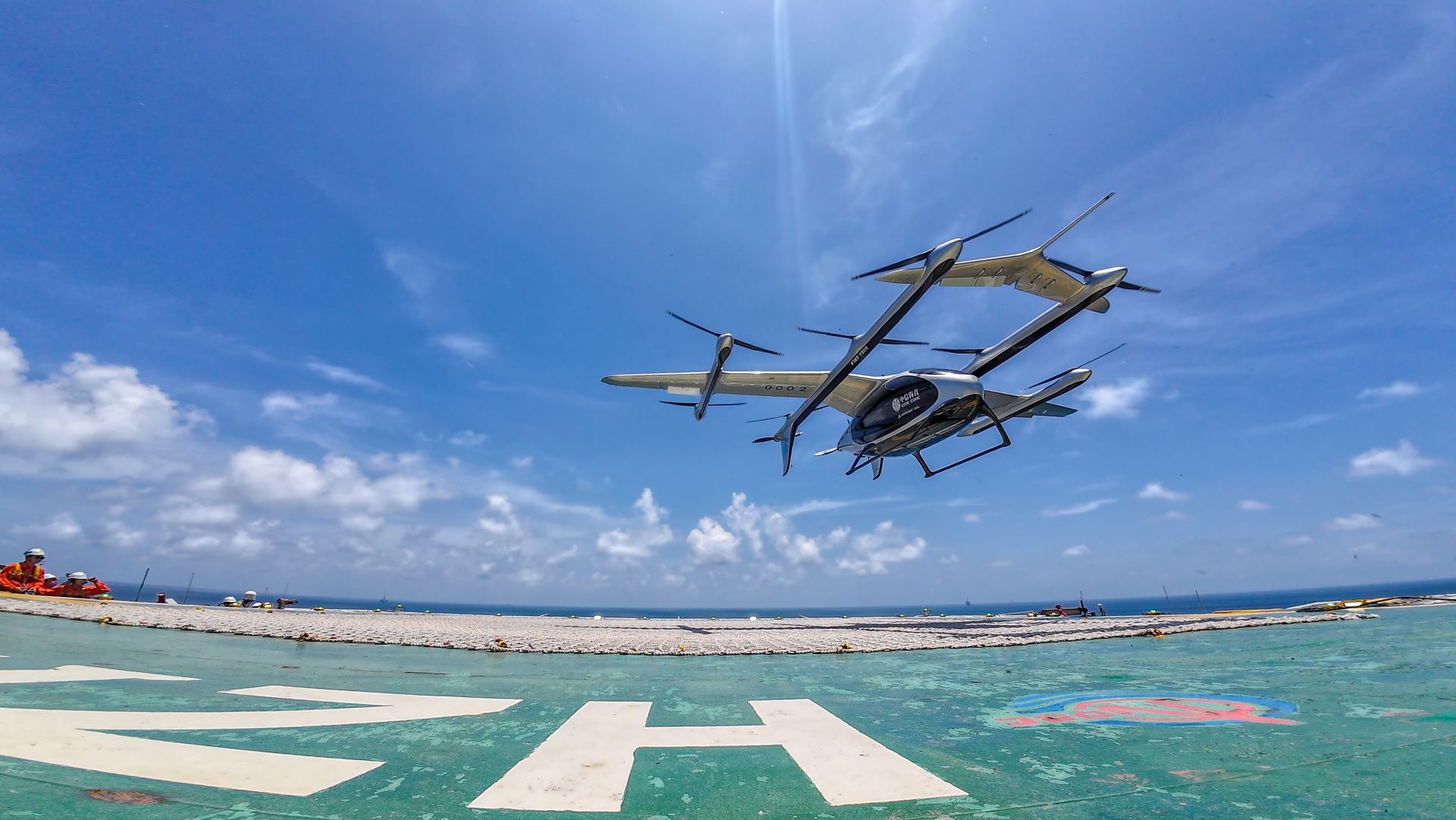 我国自主研发的大型电动垂直起降航空器(eVTOL)“凯瑞鸥”。图源:中国海油