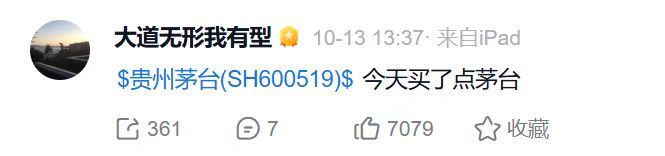 段永平多次公开表示,买股票就是买企业,对优质公司保持耐心。10月13日,段永平表示:“今天买了点茅台。”