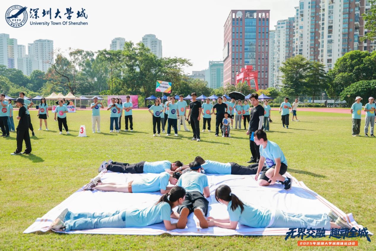 此外,“呼啦圈竞走”、“百人战鼓”、“力拔山河”等趣味项目,也都强调团队协作与沟通,让每一位参与者在互动中消融了身份、年龄和背景的界限,亲身体验到“无界之城”的活力与温度。“比赛过程很有趣,我们常在实验室与枯燥的数据打交道,参加这个运动会感觉很有新意,也激发了我更多的想象活力。”清华大学深圳国际研究生院博士后费子桐开心地说道。