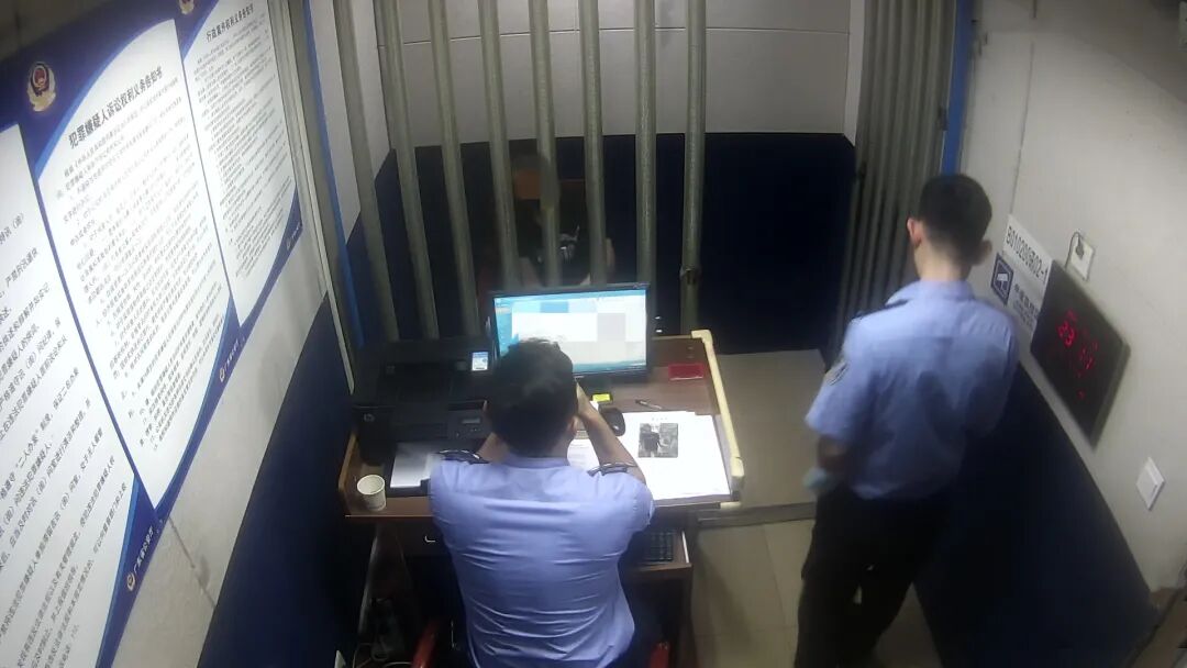 ▲民警审讯嫌疑人卢某