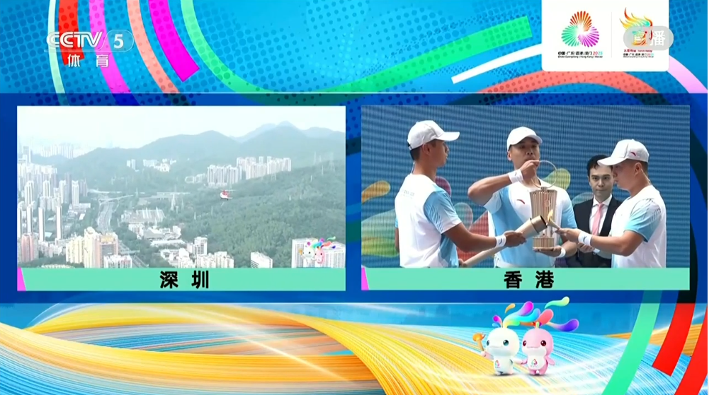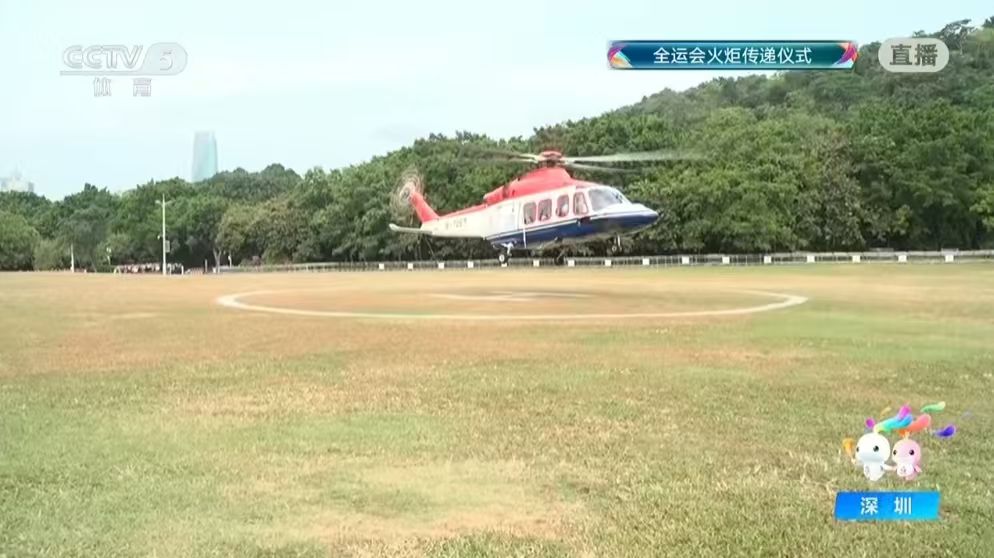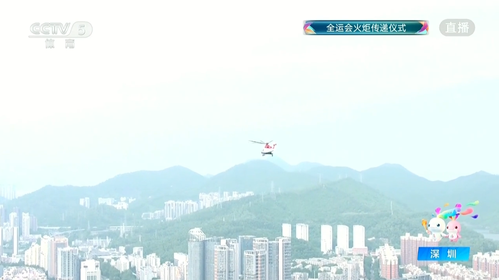随着直升机从莲花山起飞进行空中传递,飞越深圳的山脊与海岸,环绕前海、眺望香港,纵览粤港澳大湾区,象征深圳开放包容的城市气度。