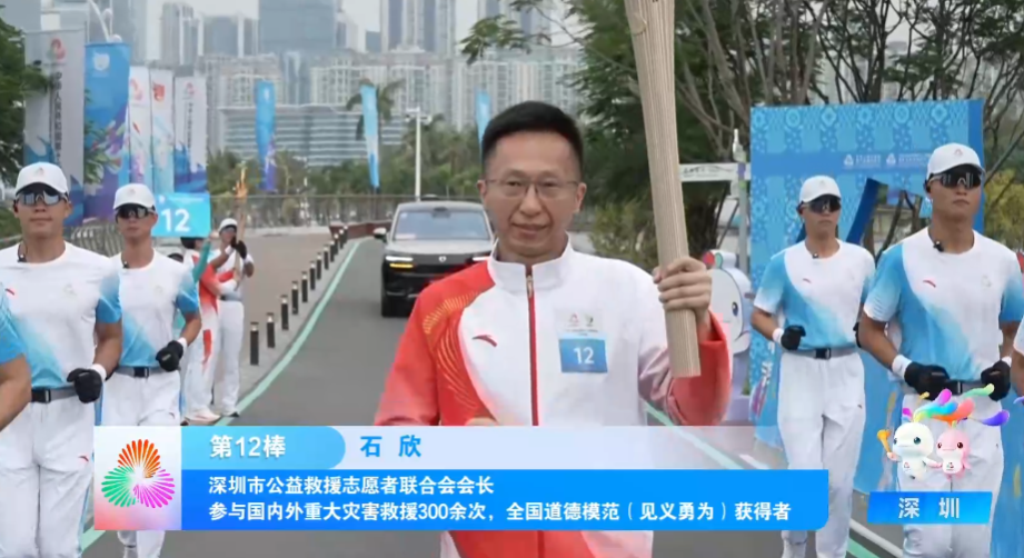 第十二棒:深圳市公益救援志愿者联合会会长,参与国内外重大灾害救援300余次,全国道德模范(见义勇为)获得者——石 欣