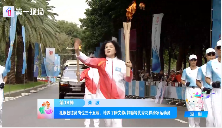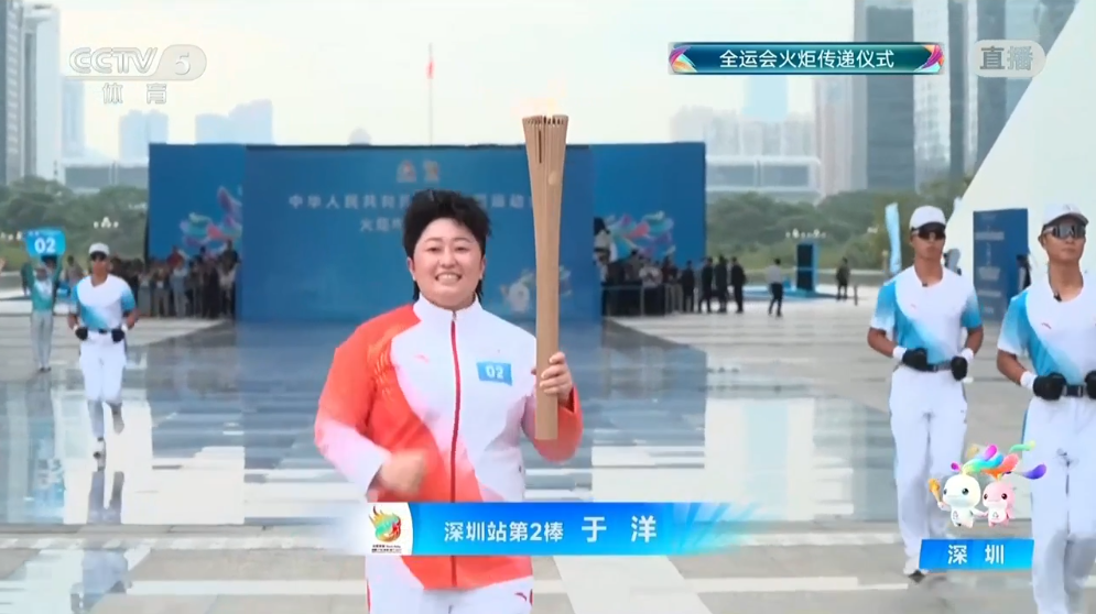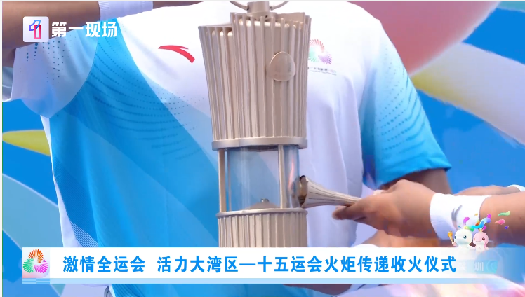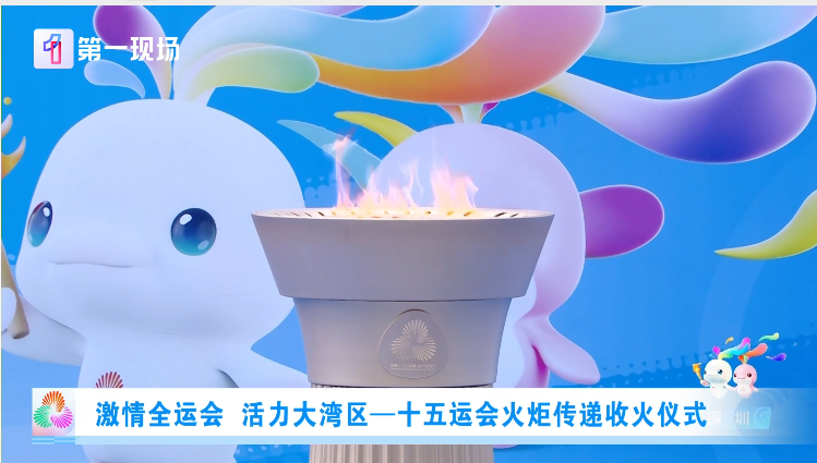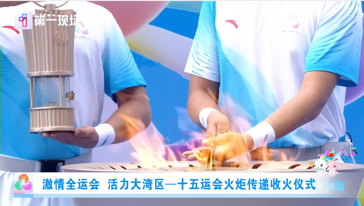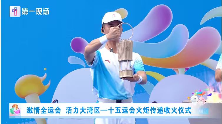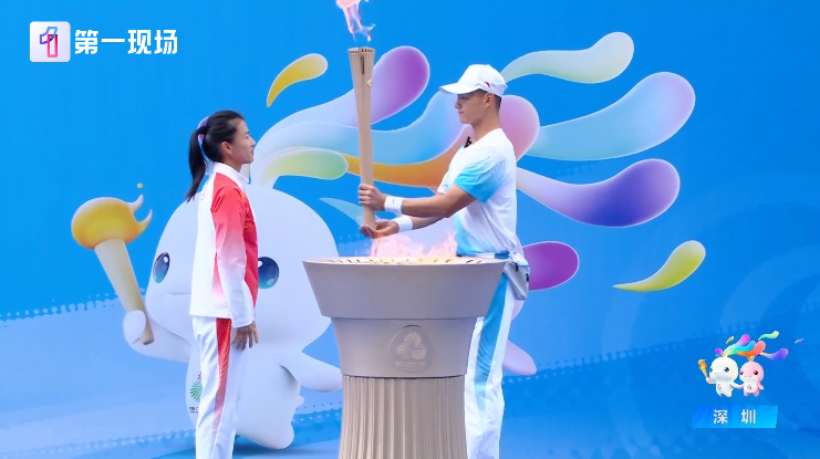 火炬传递是连接全民与赛事的纽带,收火仪式在前海国际会议中心举行。这里曾是深圳经济特区建立40周年庆祝大会现场,定位为粤港澳大湾区城市会客厅。伴随着鼓号队铿锵有力的节奏,最后一棒火炬手、中国女子竞走杰出运动员刘虹手持火炬跑向仪式舞台,登台展示火炬并点燃火种盆。随后,火种护卫从刘虹手中迎回火种。