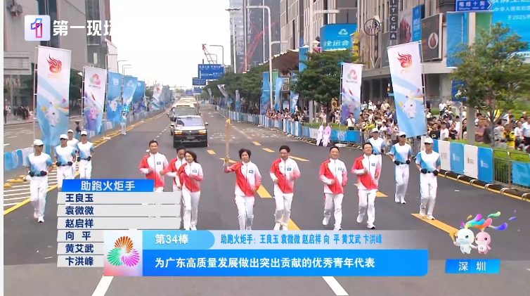 助跑火炬手:为广东高质量发展做出突出贡献的优秀青年代表——王良玉,袁微微,赵启祥,向 平,黄艾武,卞洪峰。