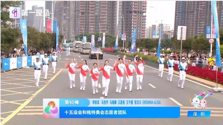 第四十五棒:十五运会和残特奥会志愿者团队——李秋实,马浩宇,马晓娜,王思尧,王子睿,张文斗,EREMINA ALISA。