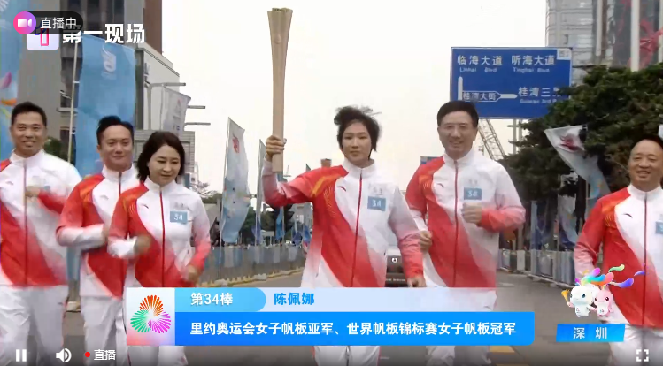 第三十四棒:主火炬手:里约奥运会女子帆板亚军、世界帆板锦标赛女子帆板冠军——陈佩娜