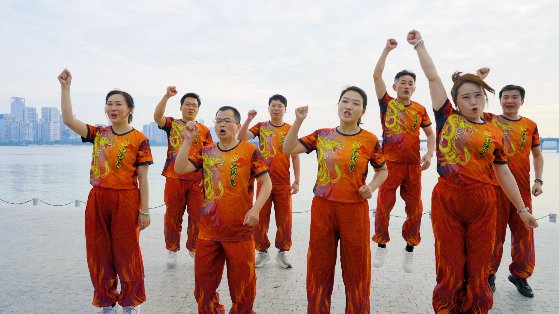 本次拍摄团队的足迹覆盖宝安多个地标场景:“湾区之光”与欢乐港湾摩天轮勾勒出现代都市天际线;清平古墟承载着历史记忆;石岩湖环湖绿道与羊台山满目青翠;海边步道海风轻拂,自然景观与人文地标共同构成MV的鲜活背景……其中,石岩湖环湖绿道拍摄现场尤为热闹,120余名新的社会阶层人士齐聚于此,在《气势如虹》“冲冲冲”的激昂旋律中,他们整齐挥动小红旗,动作协调一致,以饱满的热情完成集体镜头。