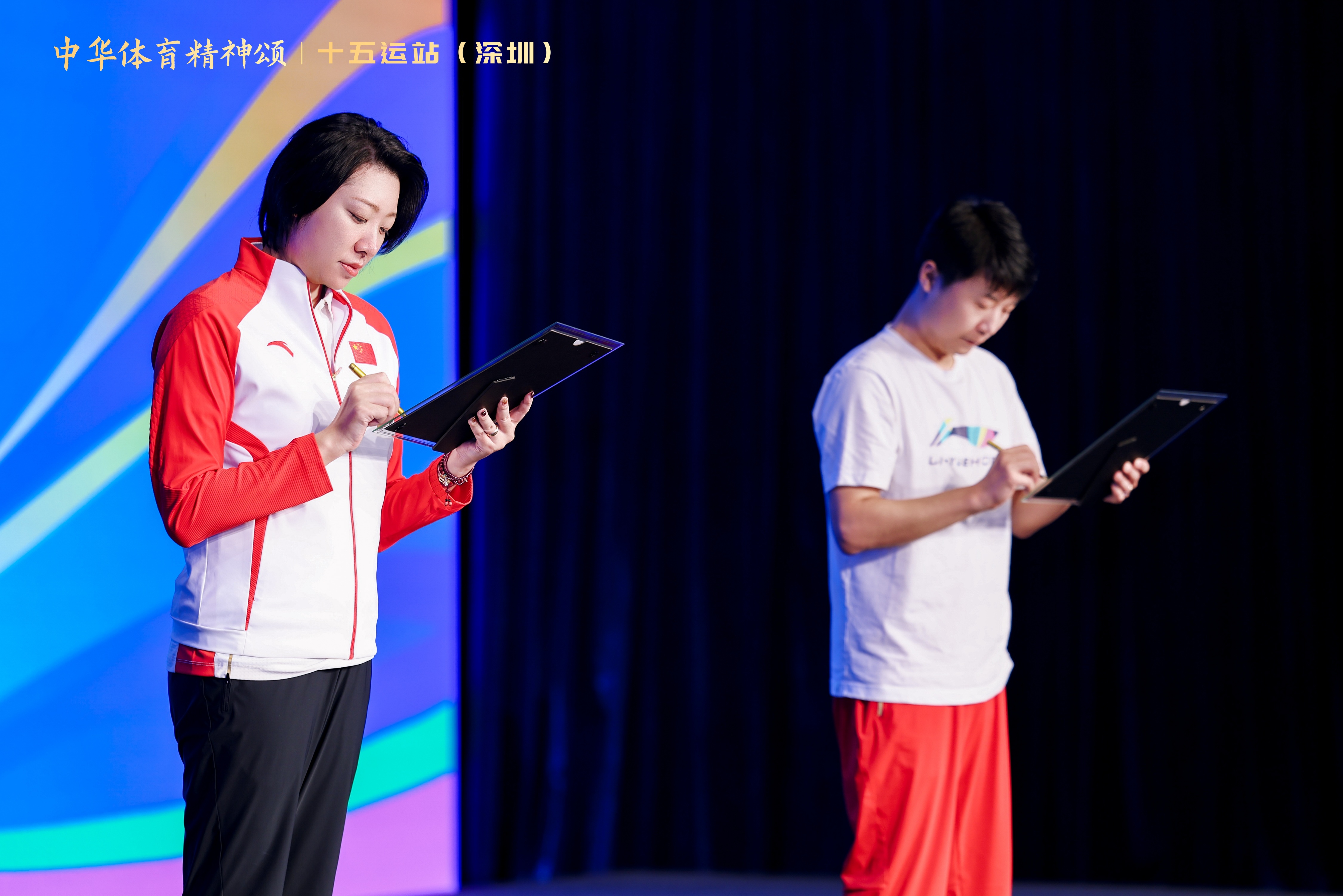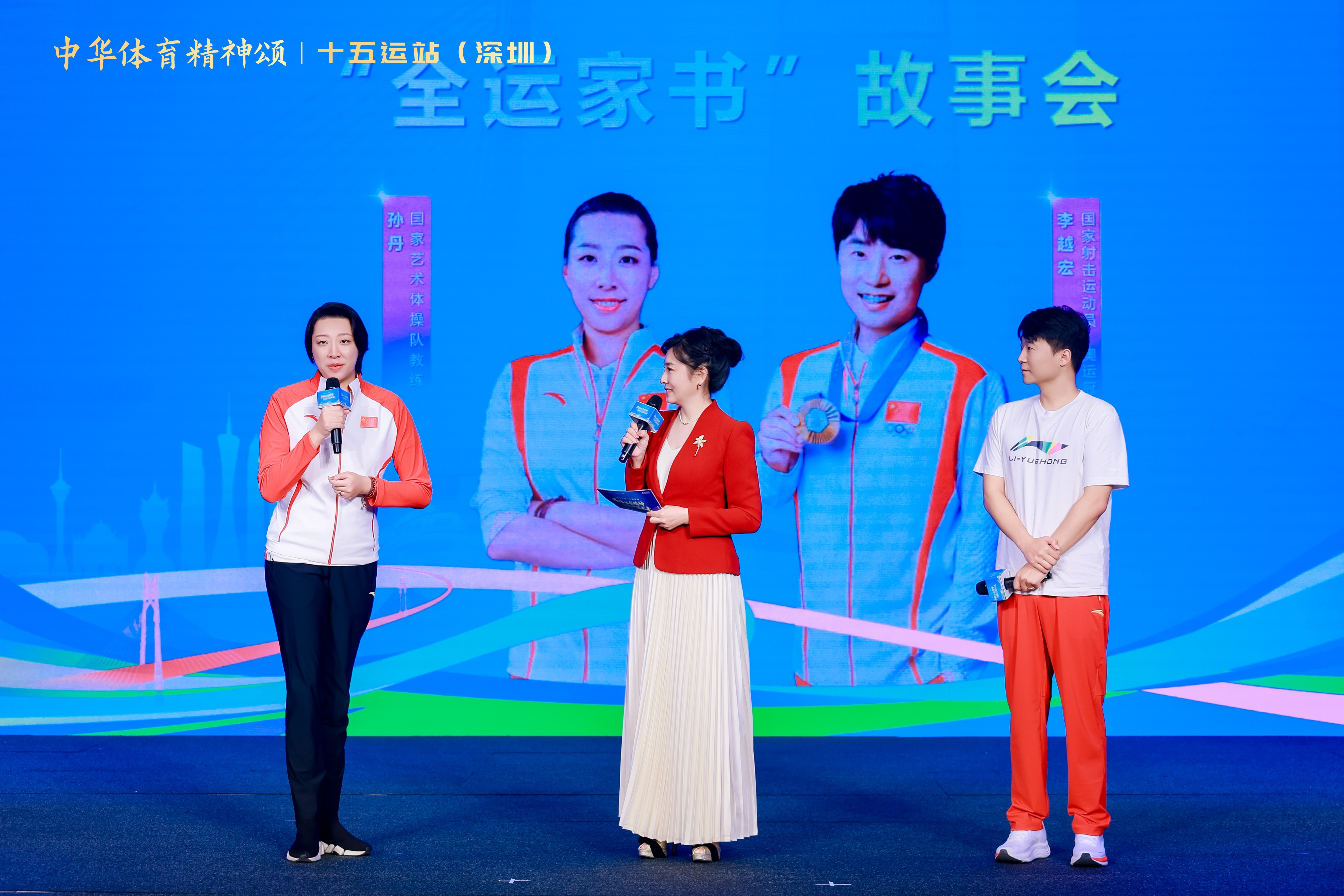 活动现场的“全运家书故事会”环节中,广东省话剧院演员深情演绎了国家射击队运动员、奥运冠军李越宏和国家艺术体操队教练孙丹的家书。李越宏在给父母的家书中写道,“小家”的支持,让自己更有力量为“大家”拼搏、为国争光。孙丹在家书中对艺术体操队的姑娘们说,备战没有捷径,那些重复千万次的动作、咬牙坚持的时刻,都是未来站在奥运赛场上的底气。李越宏、孙丹随后登上舞台,分享家书背后的故事,展现追梦路上的初心与担当,生动诠释了中华体育精神的深刻内涵。