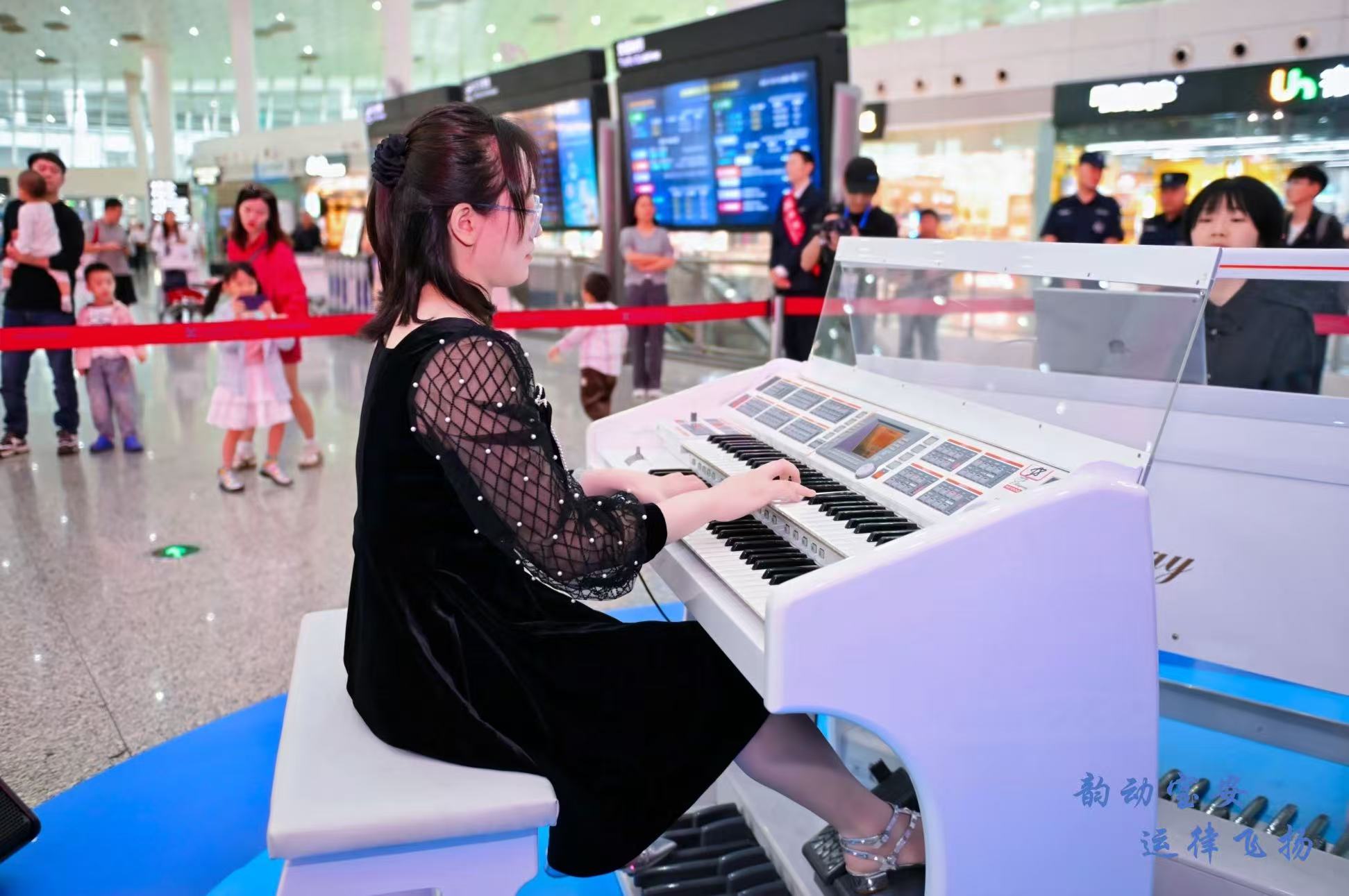 當日下午3時,《007》主題曲奏響,匆忙的人流頓時放緩腳步。隨後,《菊花台》的婉轉旋律則讓現場氛圍變得輕柔,更有年輕旅客輕聲跟唱。緊接着,巫丹霞老師帶來激昂澎湃的《保衛黃河》,震撼的演奏吸引更多人潮聚。兩位演奏家指尖流轉,將電子管風琴豐富的音色與震撼的表現力展現得淋漓盡致。從上海遠道而來的王先生告訴記者:“沒想到在機場能遇到這麼專業的演出,太棒了。”