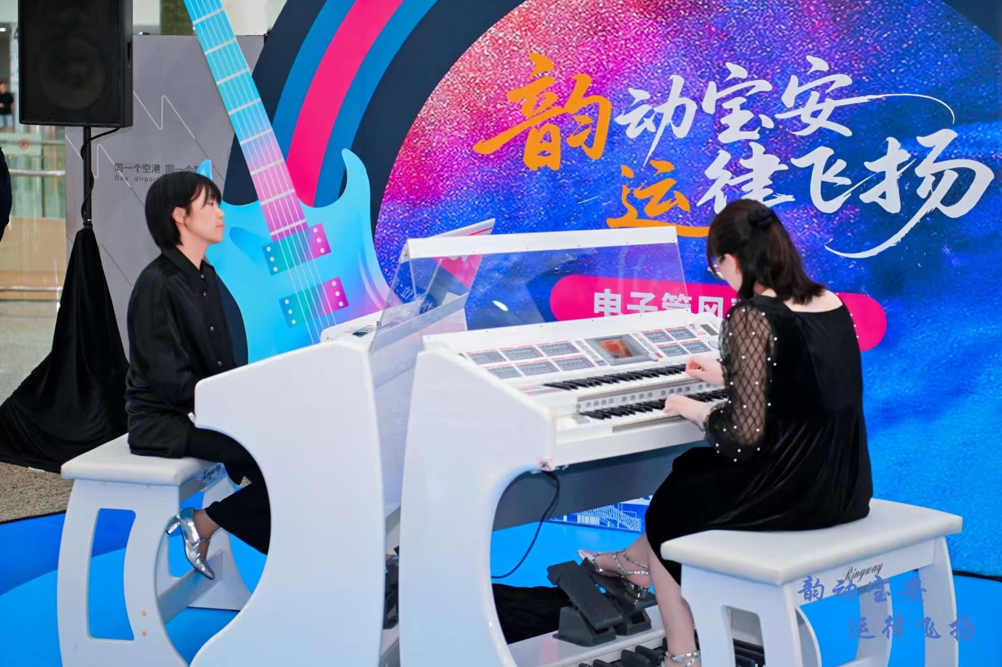 11月1日下午,深圳國際機場2樓地面交通中心化身藝術殿堂,伴隨着電子管風琴激昂的旋律,由深圳市寶安區文化廣電旅遊體育局主辦的“韻動寶安 運律飛揚”十五屆運動會主題演出第三場活動在此精彩上演。這場由中國青年電子管風琴演奏家巫丹霞、馮玉敏聯袂出演,讓匆忙的機場空間瞬間充滿了藝術的魅力。