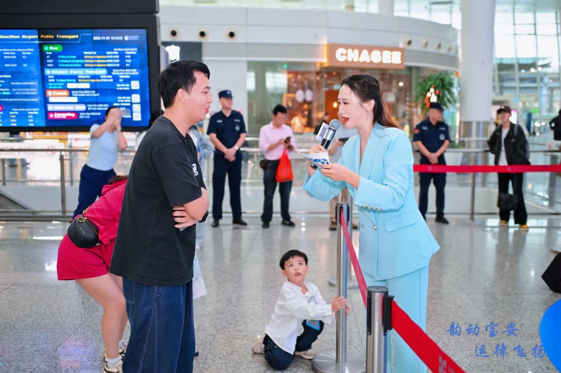 值得關注的是,演出當天,第十五屆全國運動會拳擊項目在寶安區體育館正式開賽。為呼應賽事,活動現場特別設置互動環節,主持人邀請旅客為運動健兒送上祝福。一名小朋友高聲喊出“運動員,加油!”,純真的鼓勵贏得全場掌聲;隨後一位男生接過話筒表達祝願:“希望運動員超越自我、賽出風采,預祝本屆賽事圓滿成功!”每句祝福均伴隨掌聲與紀念禮品,讓全運情懷在機場空間內持續傳遞。