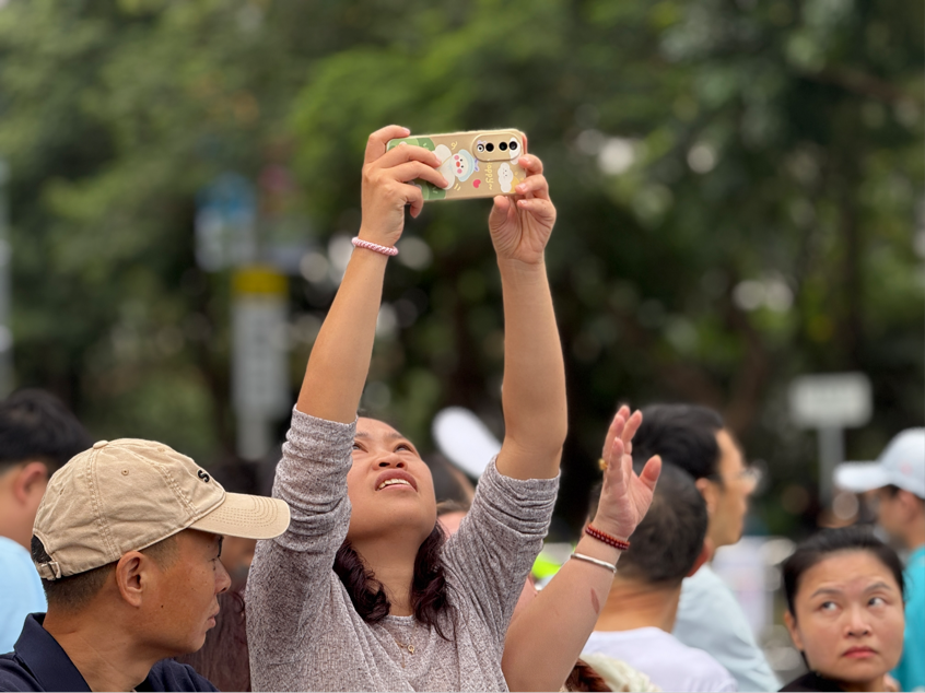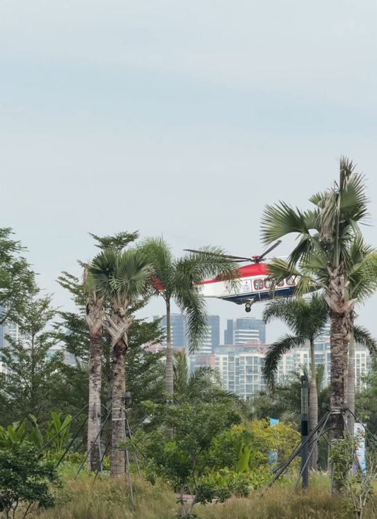 11月2日上午9时起,前海大道人潮涌动,当载有火炬的直升机在前海石公园上空盘旋、缓缓降落时,远处观望的市民爆发出阵阵欢呼。旗帜挥舞、掌声不断,大家纷纷举起手机记录这一刻。虽然降落区域实行交通管制,但前海大道沿线早已聚集了大量观众,热情迎接火炬传递经过的盛景。