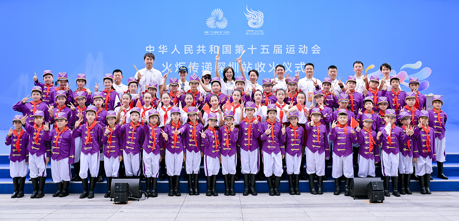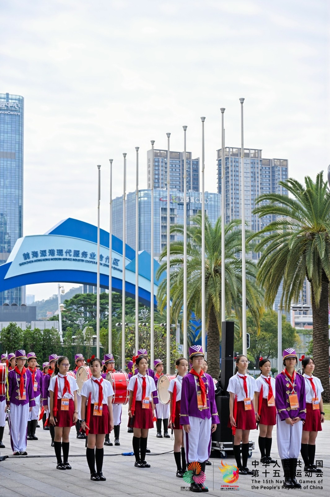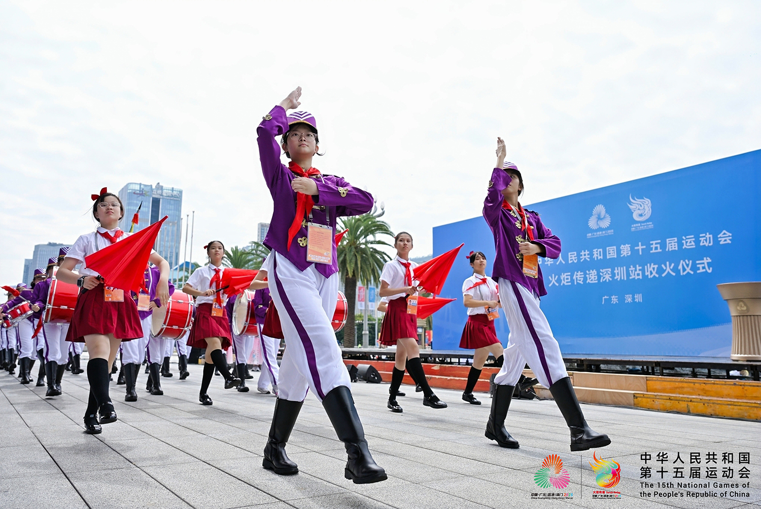 第十五届全国运动会火炬传递仪式于今日在广州、深圳、香港、澳门四城同步举行。深圳站收火仪式在前海国际会议中心隆重举办,深圳市水库小学少先队鼓号队在仪式中惊艳亮相,以整齐的步伐、昂扬的鼓乐,为全运盛典注入青春活力,展现深圳少年昂扬向上的精神风貌。