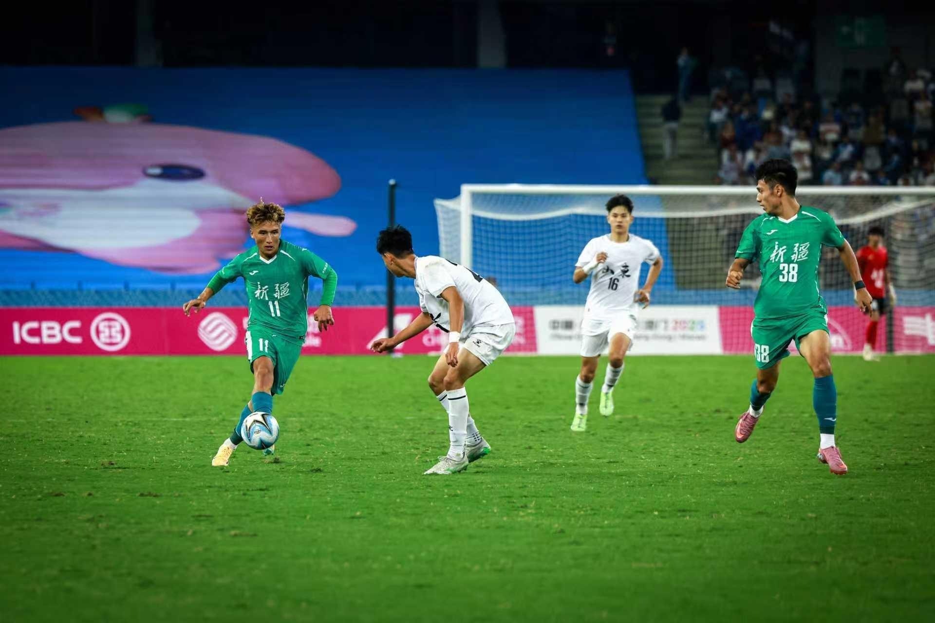 11月1日晚,深圳大运中心体育场的灯光照亮绿茵场,第十五届全国运动会男足U20组别D组首轮焦点战上演。夺冠热门山东队在先失一球的被动局面下,凭借点球扳平与下半场反超进球,最终以2:1逆转劲旅新疆队,斩获小组赛首胜,为“死亡之组”的争夺写下充满张力的开篇。现场3000余名观众的呐喊声贯穿球场,见证这场青春对决的热血时刻。