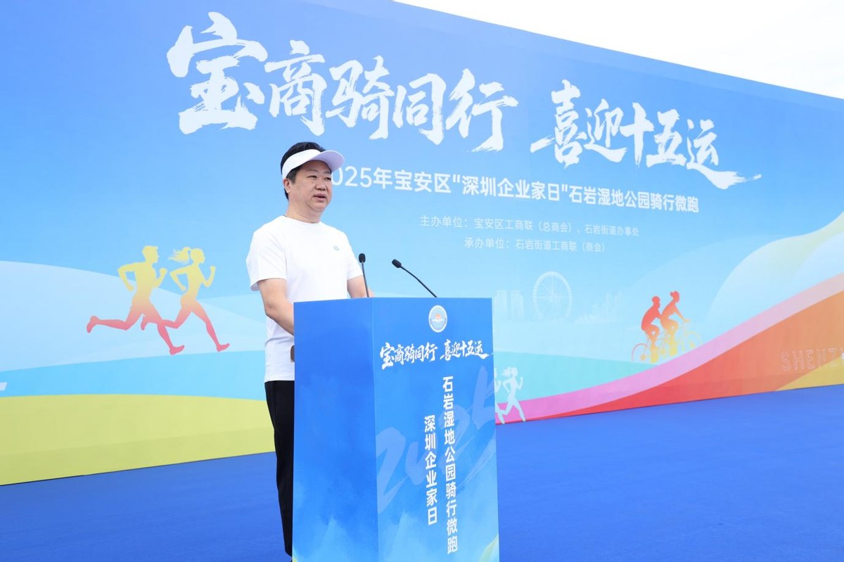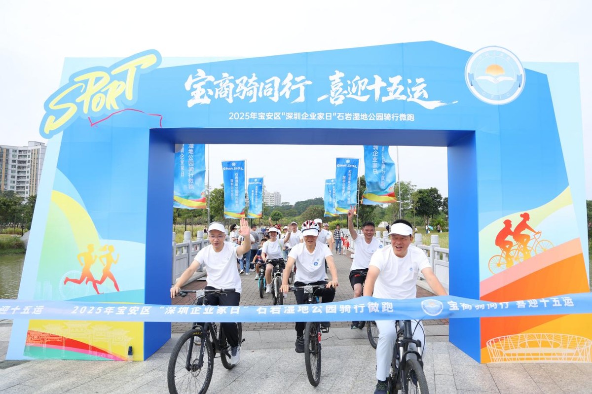 2025年宝安区“深圳企业家日”骑行微跑活动在石岩湿地公园活力开启。