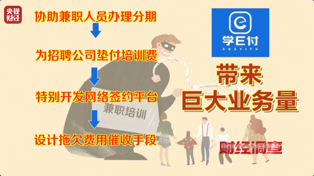 记者来到学易付(山东)信息科技有限公司,公司的李经理告诉记者,“学易付”就是兼职转培训生意里,帮助兼职人员办理培训费分期支付业务的公司。学易付公司会提前将一定比例的培训费直接打给兼职公司,进行“垫资”,让这些兼职公司省去了后面再按月分期收取培训费的流程,迅速套取大量资金。