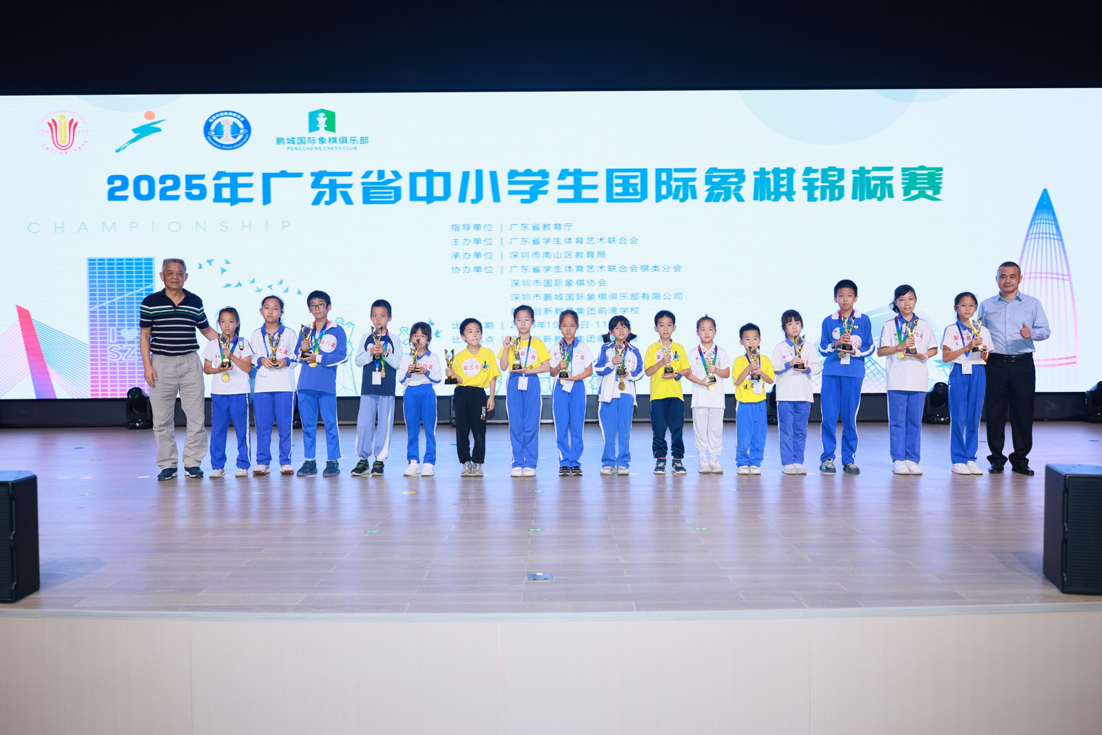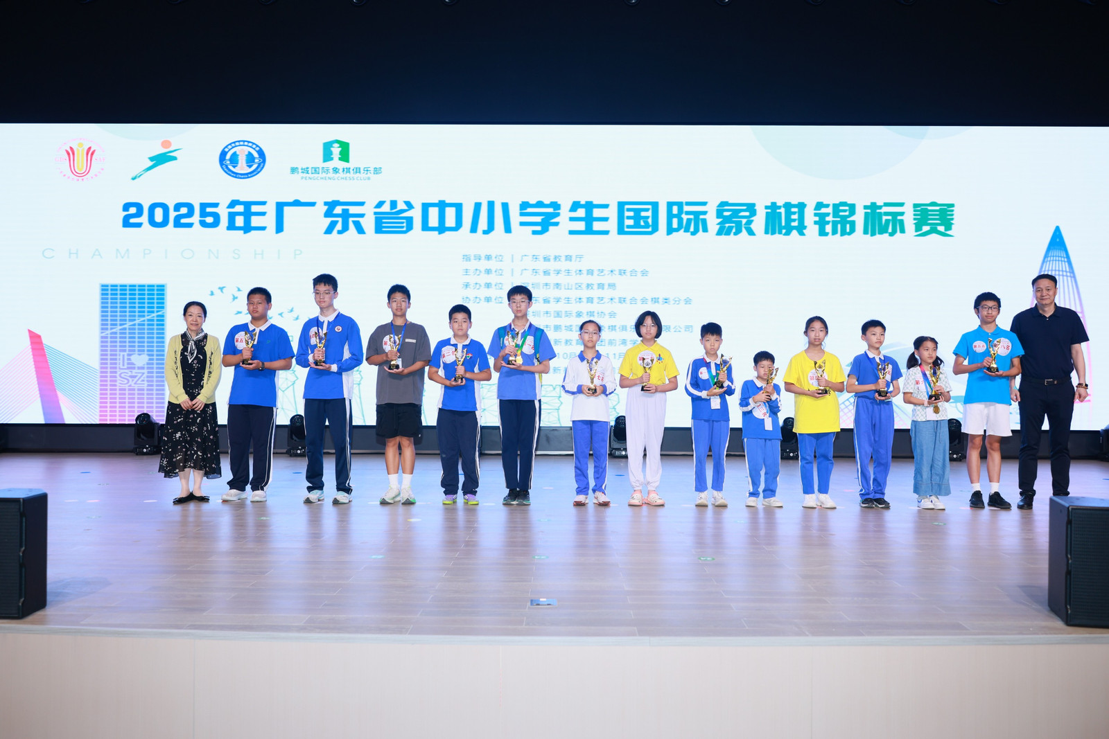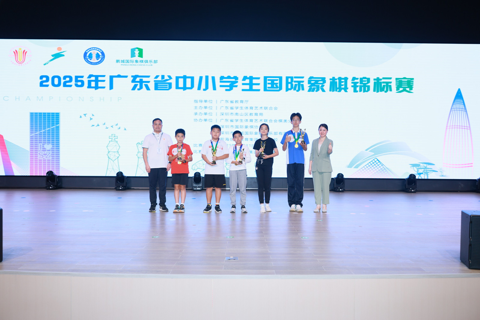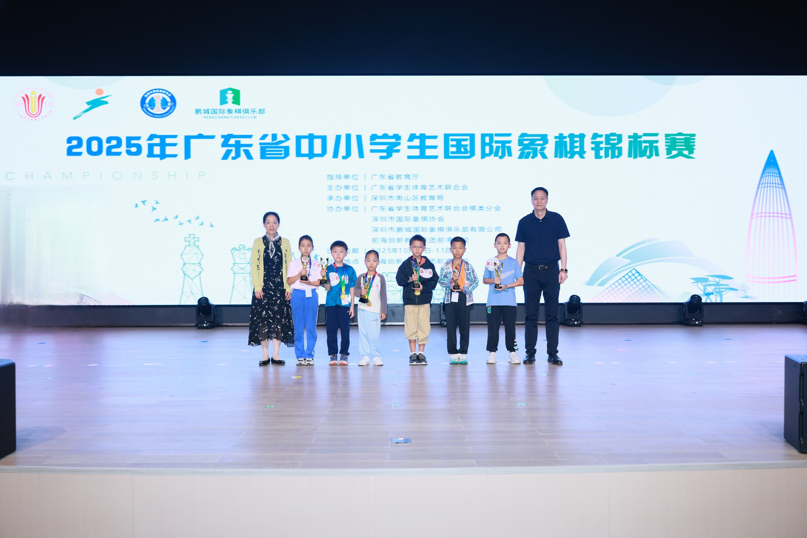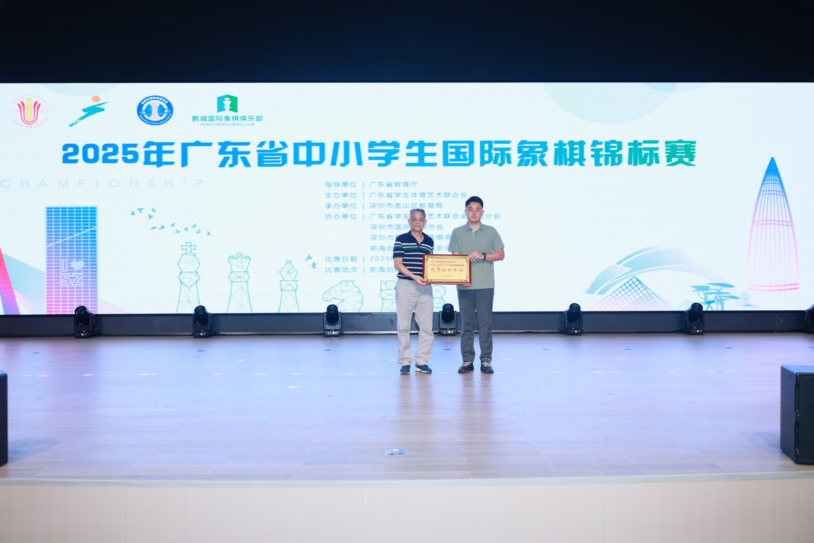 中国国际象棋协会特邀副会长、深圳市群众体育促进中心特聘专家教练员刘适兰,南山区教育科学研究院德体卫艺部副部长、体育教研员郑含斌,广东省学生体育艺术联合会棋类分会副会长张孝平,深圳市国际象棋协会常务副会长兼秘书长曹阳,裁判长、国际棋联级裁判陈兴利,深圳市鹏城国际象棋俱乐部有限公司总经理张志梅等嘉宾为获奖选手及单位颁奖。