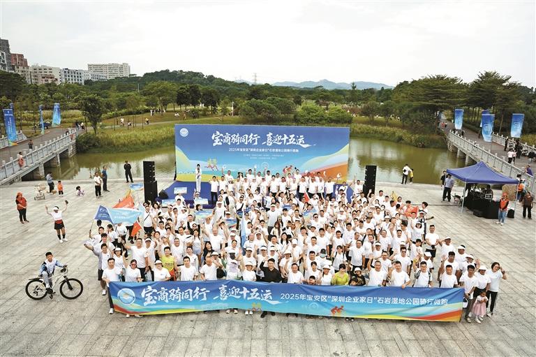 ▲2025年宝安区“深圳企业家日”骑行微跑活动在石岩湿地公园举行。