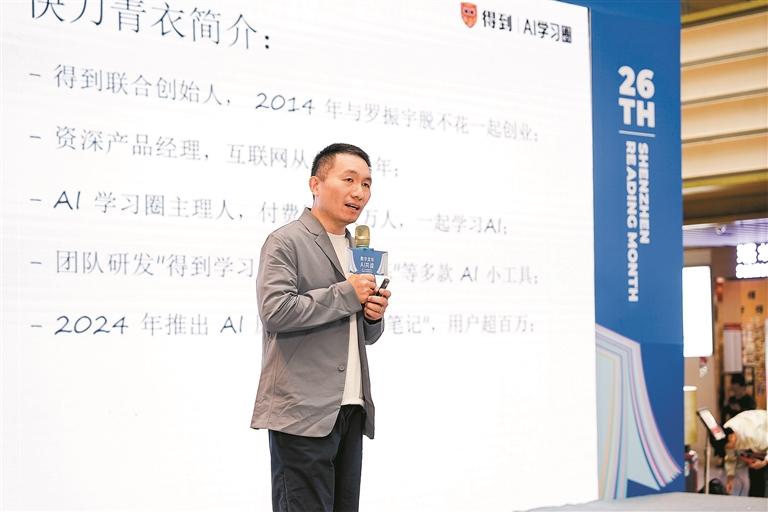 在主题分享中,快刀青衣还向现场读者推荐了部分AI工具。“有些工具能够精准解决阅读、学习中的痛点,部分功能看似小众,却能帮我们把阅读、学习中的碎片化信息,转化为有价值的成果。”他希望人们能积极拥抱AI,把AI融入阅读、学习中,让“阅读积累的深度”和“AI工具的效率”有效结合,“帮助我们更好地学习。”