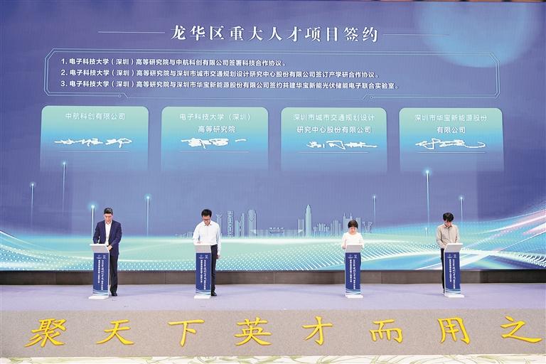 活动进行了龙舞华章人才政策宣讲,举行了电子科技大学(深圳)高等研究院与深圳市城市交通规划设计研究中心股份有限公司、深圳市华宝新能源股份有限公司等重大人才项目签约仪式;海目星激光科技集团股份有限公司与华南理工大学、电子科技大学(深圳)高等研究院与深圳市鼎阳科技股份有限公司签订校企联合培养协议;还举行了诺亦腾机器人跨本体数据工厂、龙华区场景开放创新中心(锦绣科学园分中心)等重要科技创新载体揭牌仪式;充分展现了龙华区深化教育科技人才一体发展,强化“以产聚才、以才兴产”,推动人才链与产业链、创新链深度融合,以人才驱动点燃新质生产力发展引擎的信心和决心。