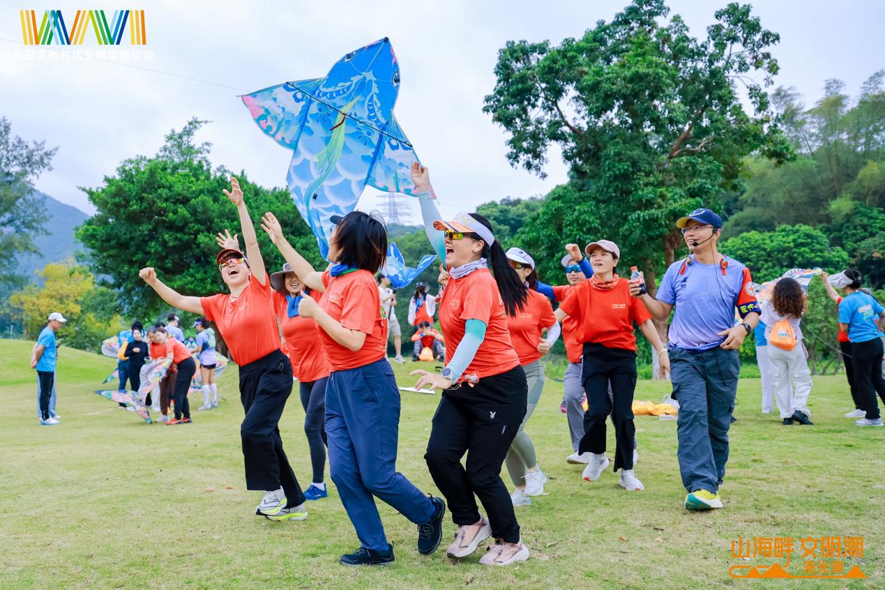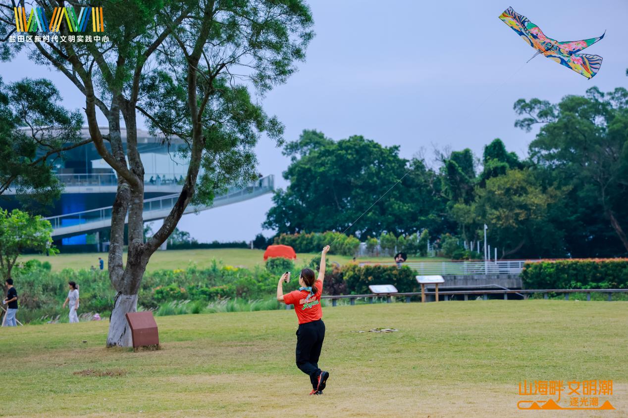 最后,别具重阳特色的放风筝环节为活动画上句号。大家在开阔的草坪上携手放飞传统纸鸢,色彩斑斓的沙燕造型风筝随风而起,在碧空山海间翩跹起舞。“风筝飞得高高的,象征我们的福气与好运也高高的!”王女士感叹道:“能在盐田这么美的地方体验重阳传统习俗,真是太难得了!”