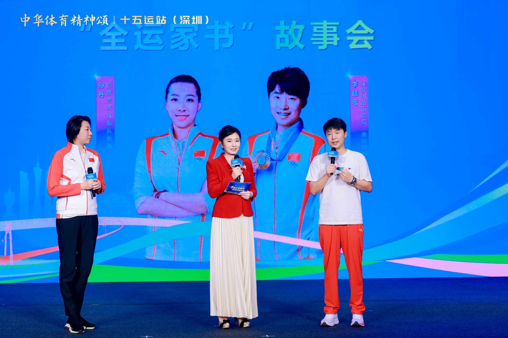 十五运会期间,人民日报海外版与国家体育总局宣传司将联合推出一批优秀运动员、教练员的“全运家书”,讲述中国体育人对家国的深情告白。现场的“全运家书故事会”环节中,广东省话剧院演员演绎了国家射击队运动员、奥运冠军李越宏和国家艺术体操队教练孙丹的家书。李越宏、孙丹随后登上舞台,分享家书背后的故事。