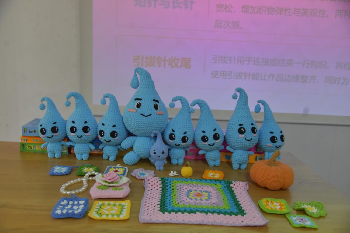 课程的一大亮点在于实现情感与社区的连接。在社区友好形象——水滴娃娃创作环节中,学员将社区文化元素与个人情感注入指尖,让一个个可爱的水滴娃娃成为承载社区记忆的文化符号,更是学员对社区归属感的创造性表达。后续,这些作品将通过社区展览与公益义卖,从单纯的手工艺品转化为社区互助的温暖载体,生动诠释“聚邻共治”理念——妈妈们通过赋能提升自我,进而反哺社区,形成友爱互助的良性循环。课程指导蓝心老师作为社区编织达人,难掩激动地分享道:“从忐忑到专注,再到自信,我见证了一场了不起的成长蜕变。”