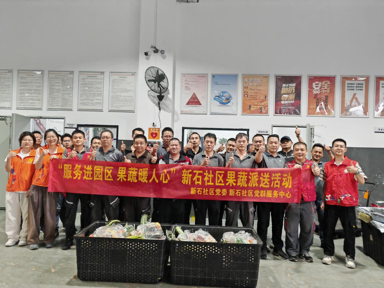 近日,大浪街道新石社区党群服务中心以“服务进园区 果蔬暖人心”为主题,将“一键果蔬到家”爱心惠民服务从社区延伸至产业园区,为辖区顺丰速运小哥等新就业群体派发近50份新鲜果蔬包。