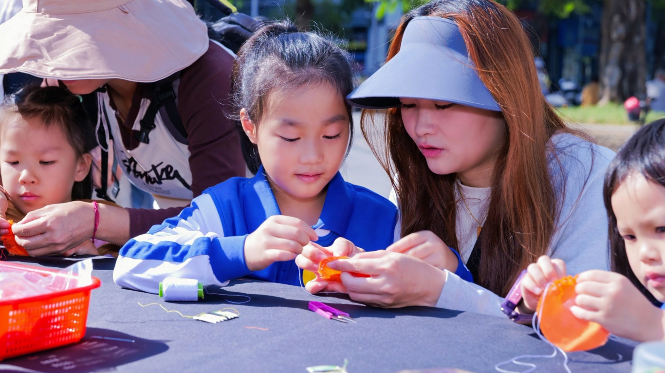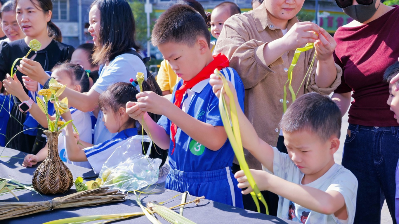 当天,在凤凰古村长廊内,该校一年级师生们在家长们的陪伴下,沐浴阳光,环视古村落,亲子共读绘本《一片叶子落下来》。随后,家长和学生一起参与知识问答、手工制作等环节活动。凤凰古村名家工作室的老师们倾囊相授,指导家长和孩子一起完成了草编、棉塑、纸上艺术等创作,现场欢声笑语不断。