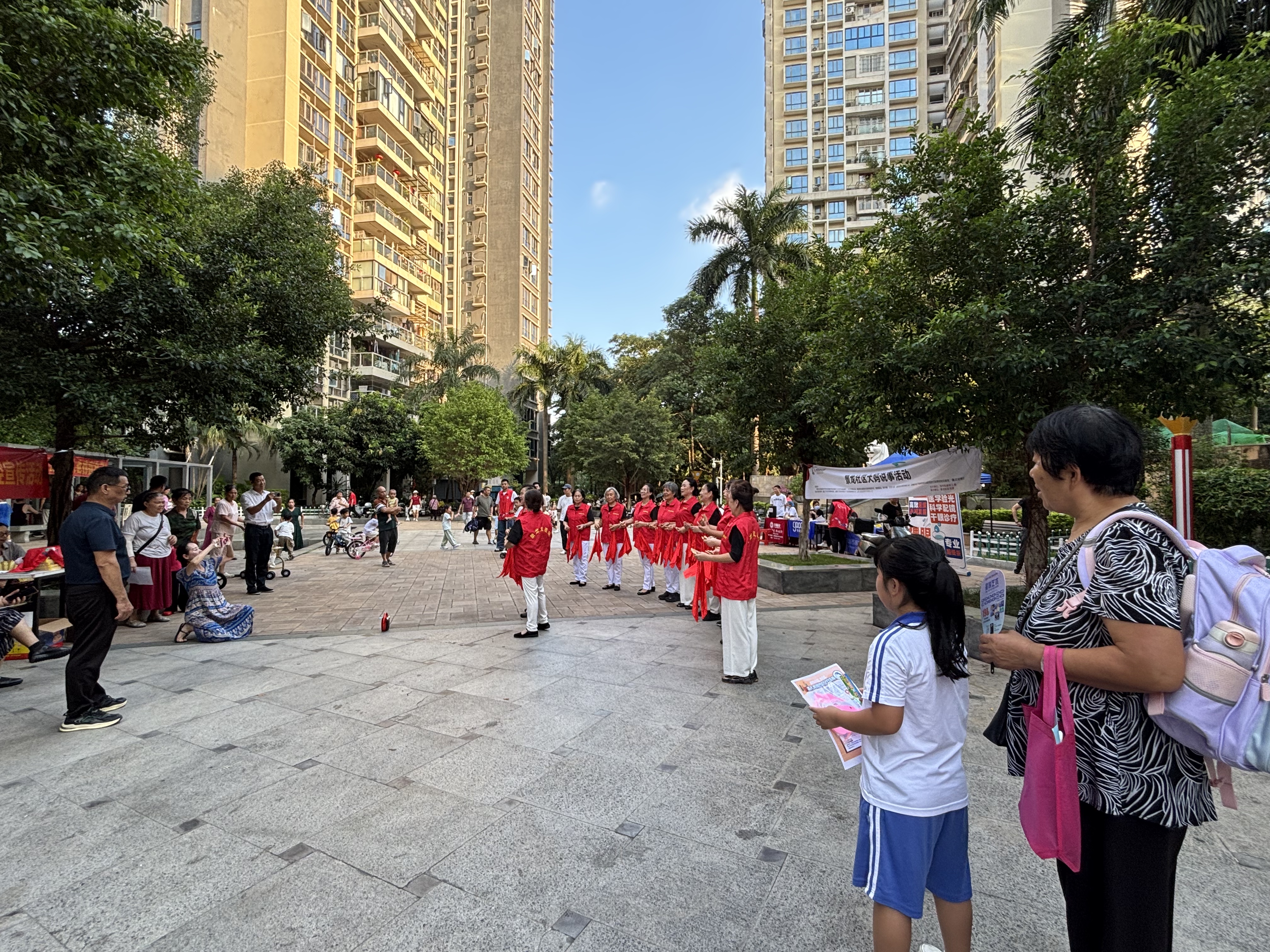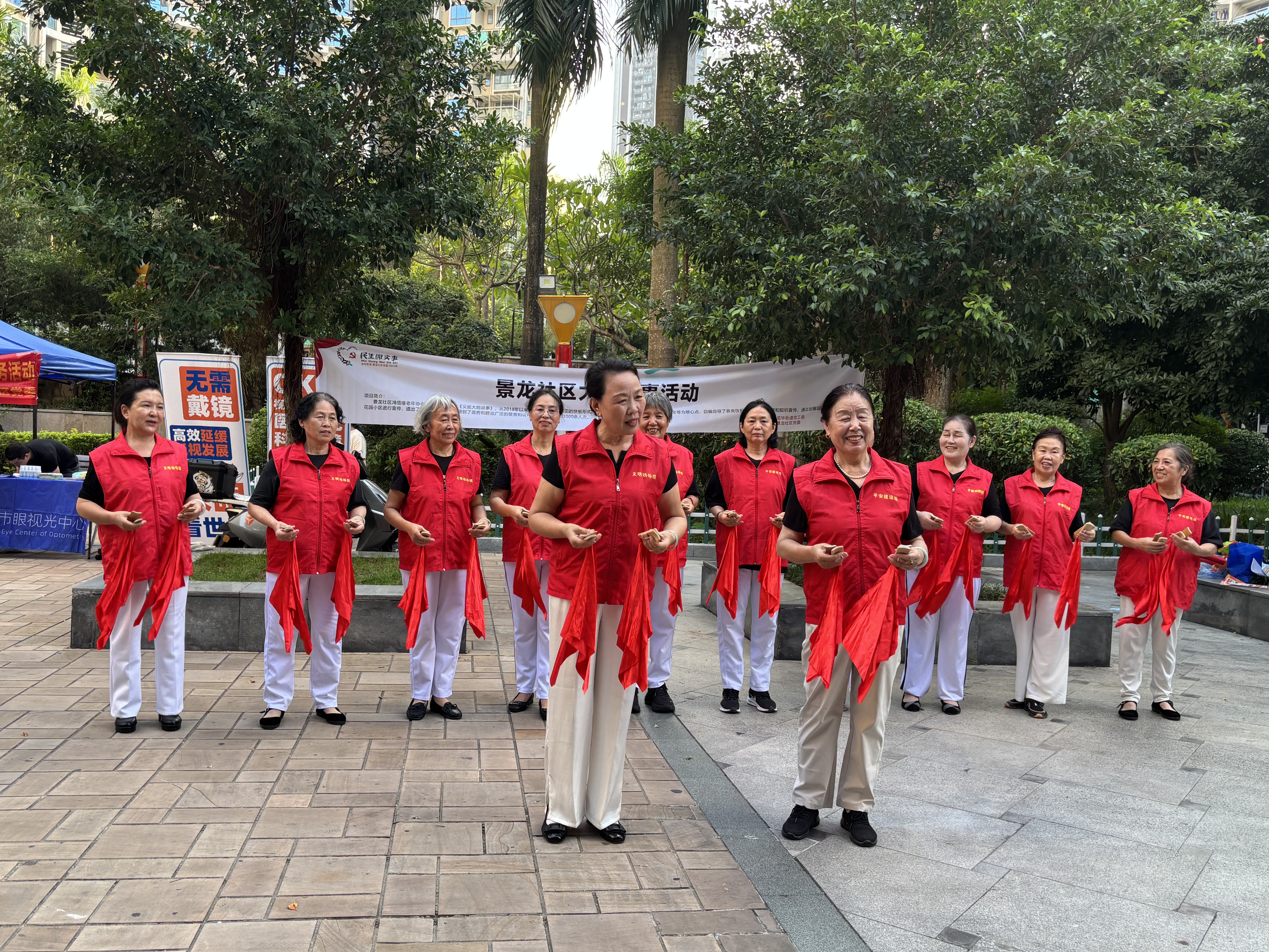 社区汇聚起一支老中青结合、专业多元的志愿服务队伍。目前,可可沙龙志愿者协会拥有会员343人,专注流浪救助与证件补办;龙之韵老年人协会356名成员常态化开展困难群体关爱;花枝俏武术舞蹈协会1236名会员多次组织“千人广场舞”参赛展演;鸿信缘老年舞蹈协会下设合唱团、舞蹈队、快板宣传队等多支队伍;逸心瑜伽协会为6000余名妇女提供身心健康服务。