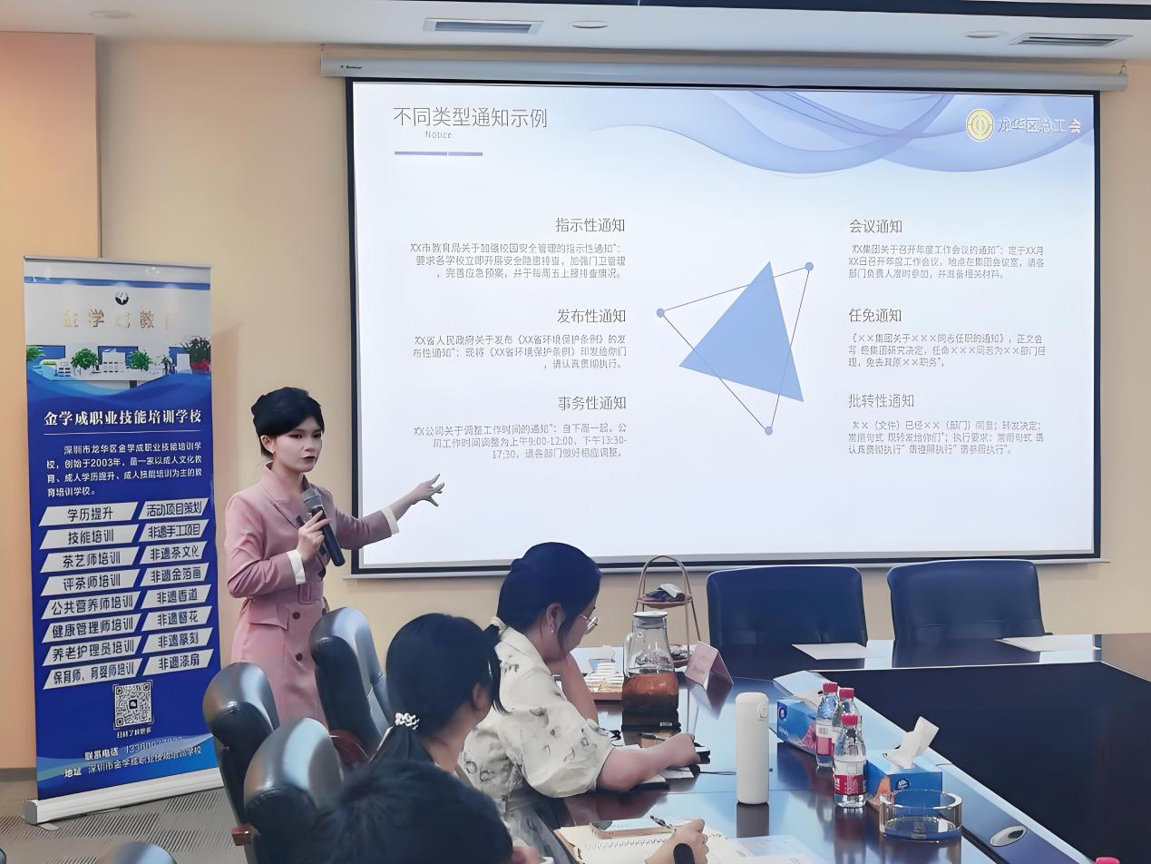 近日,由龙华区总工会联合金学成职业技能培训学校主办的第四季度技能培训第九场——“公文写作规范与技巧专题培训”在深圳新型烟草制品有限公司顺利开展。现场职工积极参与,互动频繁,学习氛围浓厚。