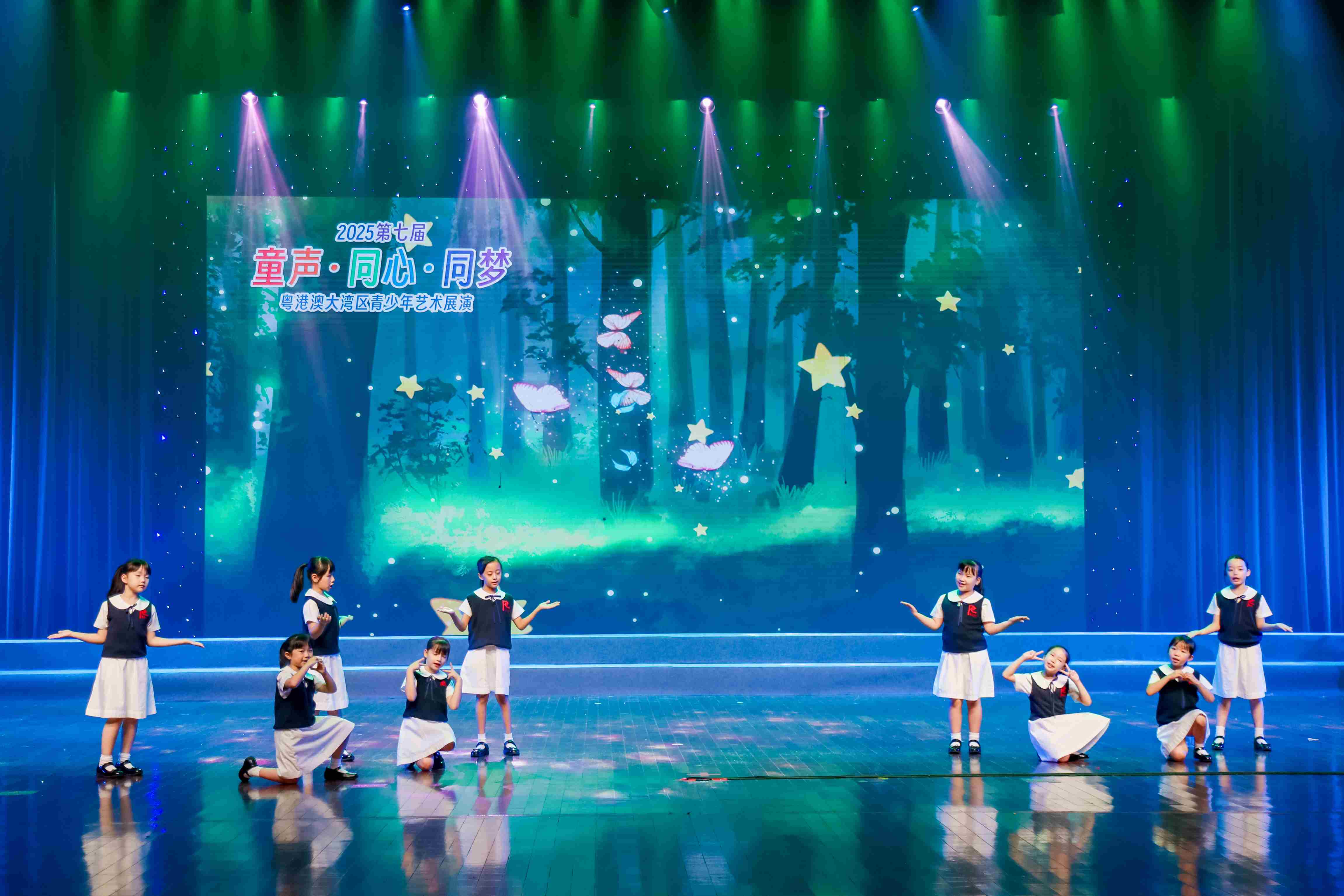 2025第七届“童声·同心·同梦”粤港澳大湾区青少年艺术展演于11月2日下午在盐田剧场盛大举行。来自香港、澳门、深圳、广州、东莞、佛山、江门、肇庆、厦门等城市的18支青少年艺术团队齐聚一堂,以“传承红色基因,共筑文化湾区”为核心,用多元艺术语言书写新时代少年的家国情怀与青春风采。本活动由深圳市盐田区文化广电旅游体育局、深圳市盐田区教育局、中国童话节组织委员会共同主办。由深圳市童话艺术团承办,深圳市盐田区文化馆协办。