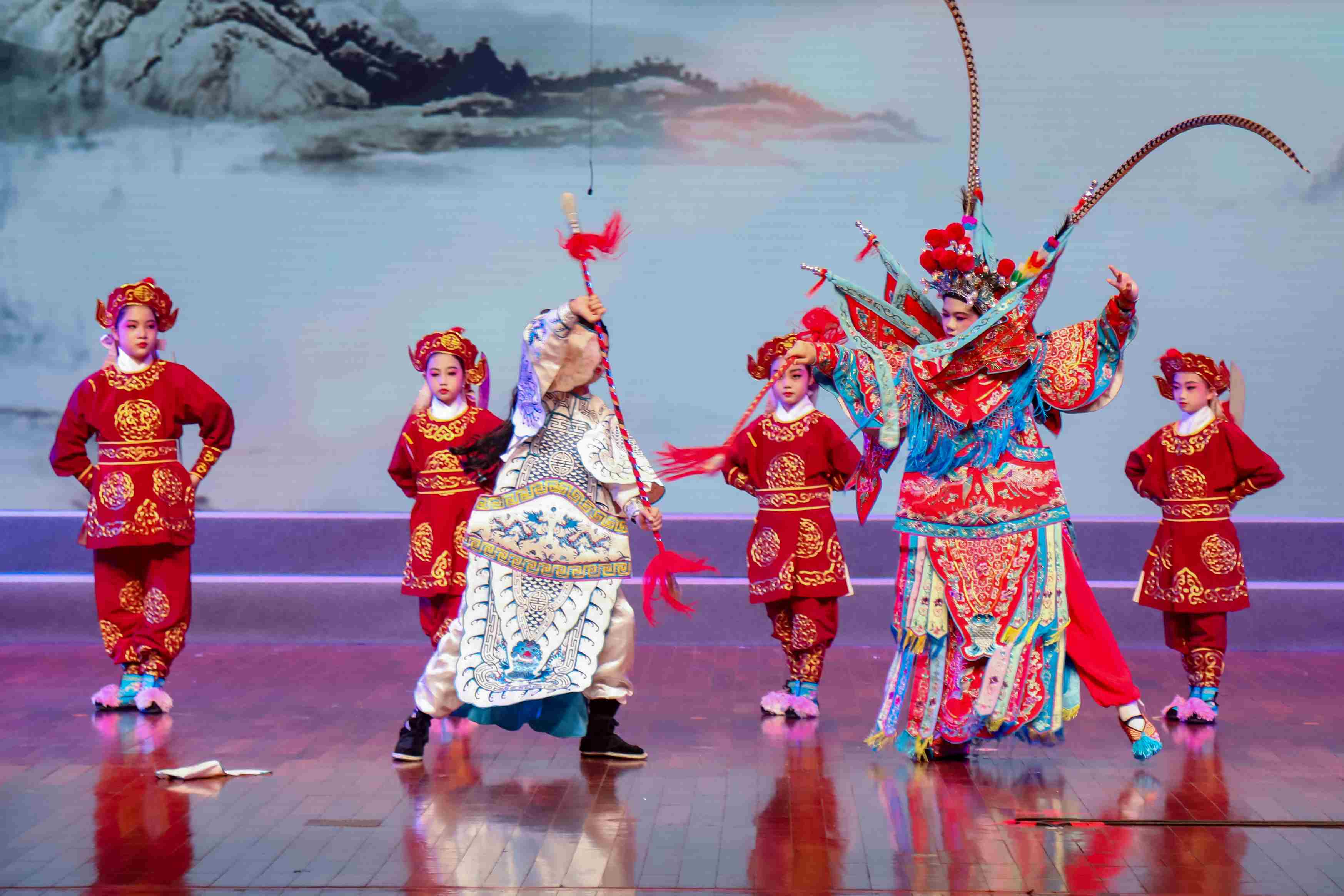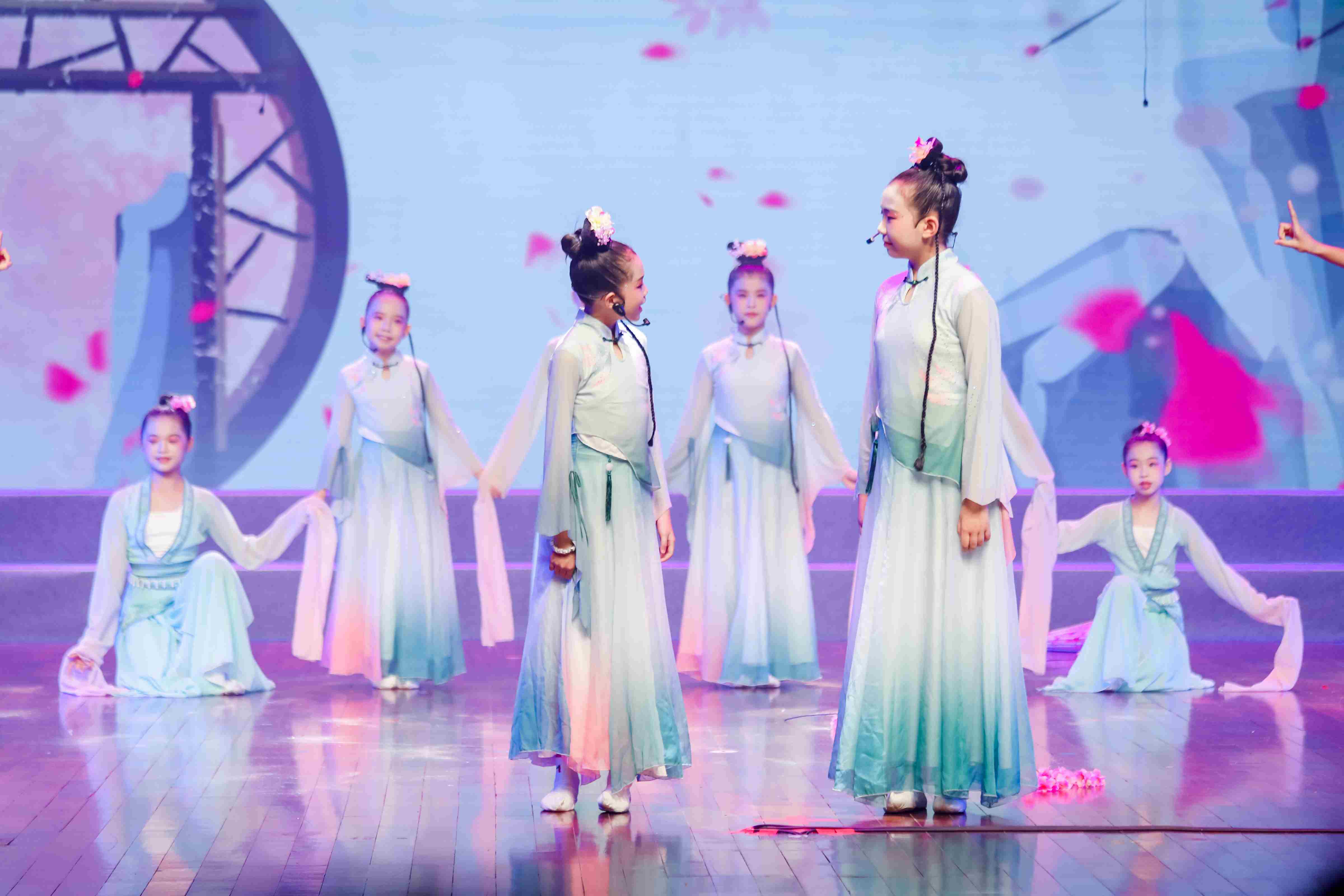 第二篇章“艺韵悠扬 文脉流长”中,深圳市向西小学粤剧折子戏《白龙关》展示非遗传承的魅力;香港方方乐趣英文小学的《古诗串烧》让传统文化在今天焕发生机;江门市新会葵乐童声合唱团《小雅鹿鸣》用清澈的童声,把千年前的和乐场景唱出来;肇庆市凤凰三立学校《钟声回响四百年》向我们讲述了430多年前肇庆诞生“中国第一钟”的辉煌历史;肇庆市鼎湖第一实验学校群舞《苗山银铃》用欢快、热烈的气氛,表达苗族人民对生活的热爱和向往;东市莞东城虎英小学朗诵《三月桃花水》能让我们听见自然与艺术的交融;本章节汇聚多元艺术形式,既是对中华优秀传统文化的致敬,更是“艺术无边界,文化共传承”理念的生动诠释。