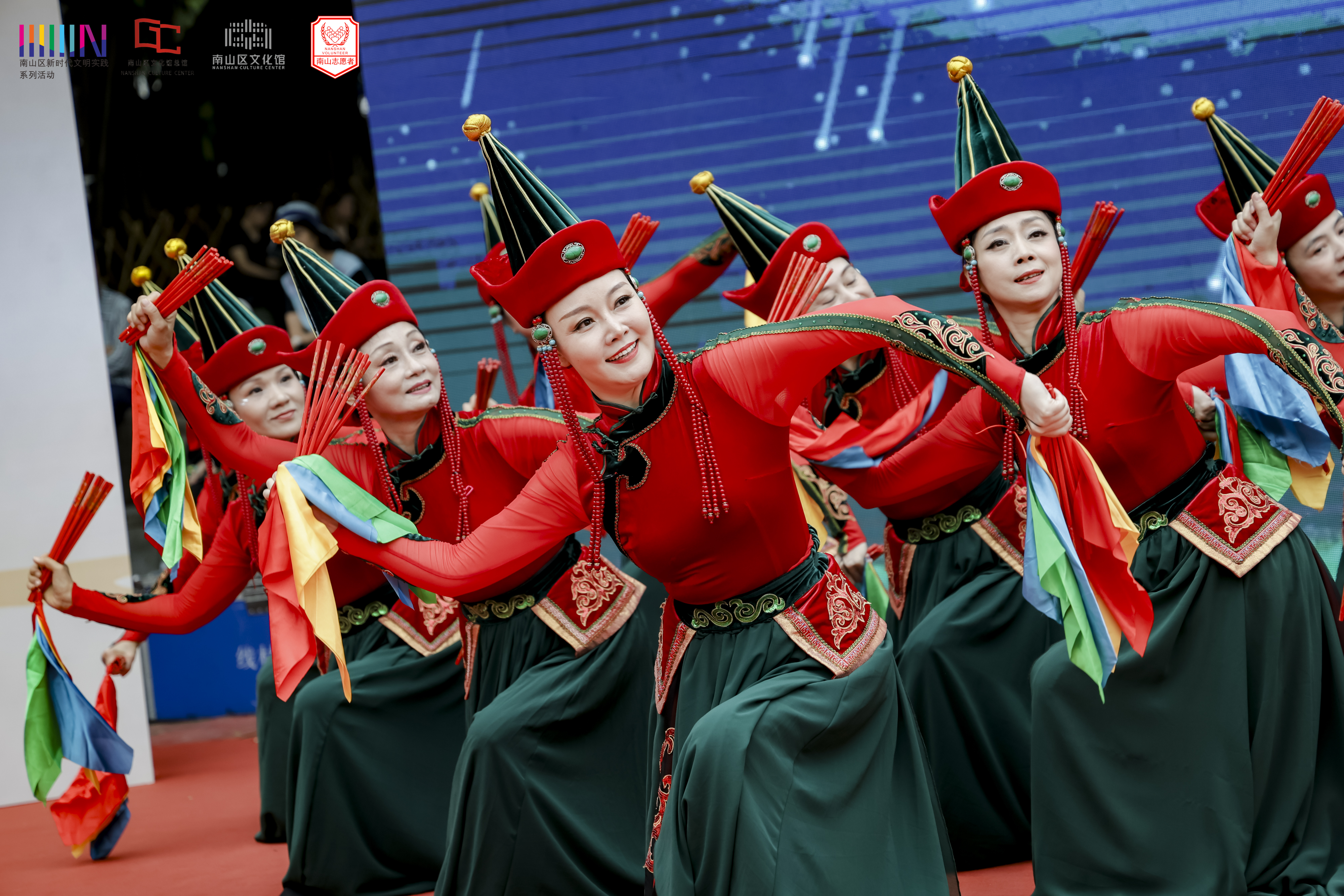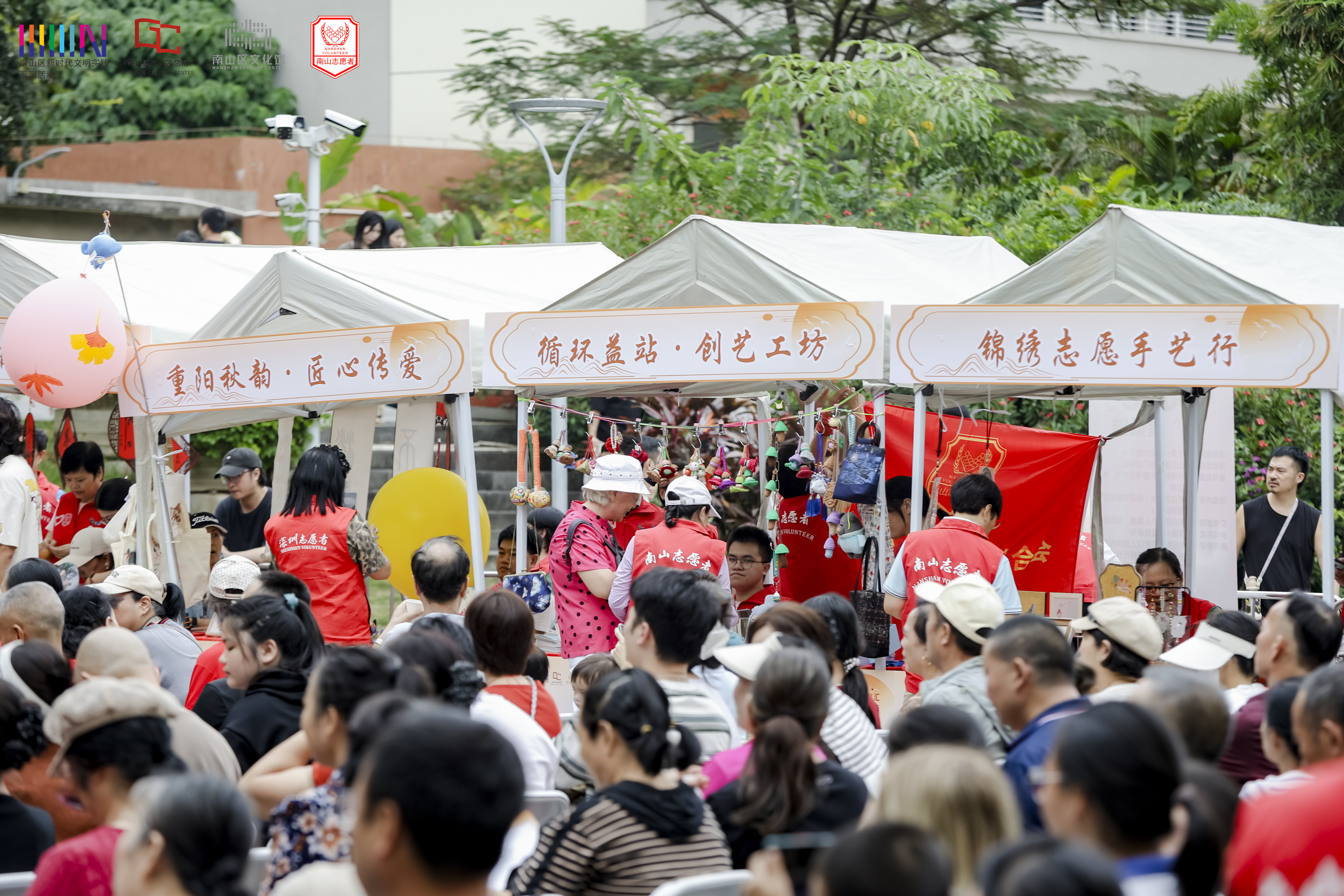 此次慰问活动邀请社区长者、退役军人、高龄志愿者代表和市民群众。由南山区文化馆培育的艺术社团献上精彩的节目,团员由文化受益者变成文化传播者,以艺术技能反哺社会。现场不仅有专业文化志愿者、非遗传承人摆开市集,以锦绣手艺、创意工坊、重阳秋趣等主题展示,还有迎十五运趣味体育项目体验。