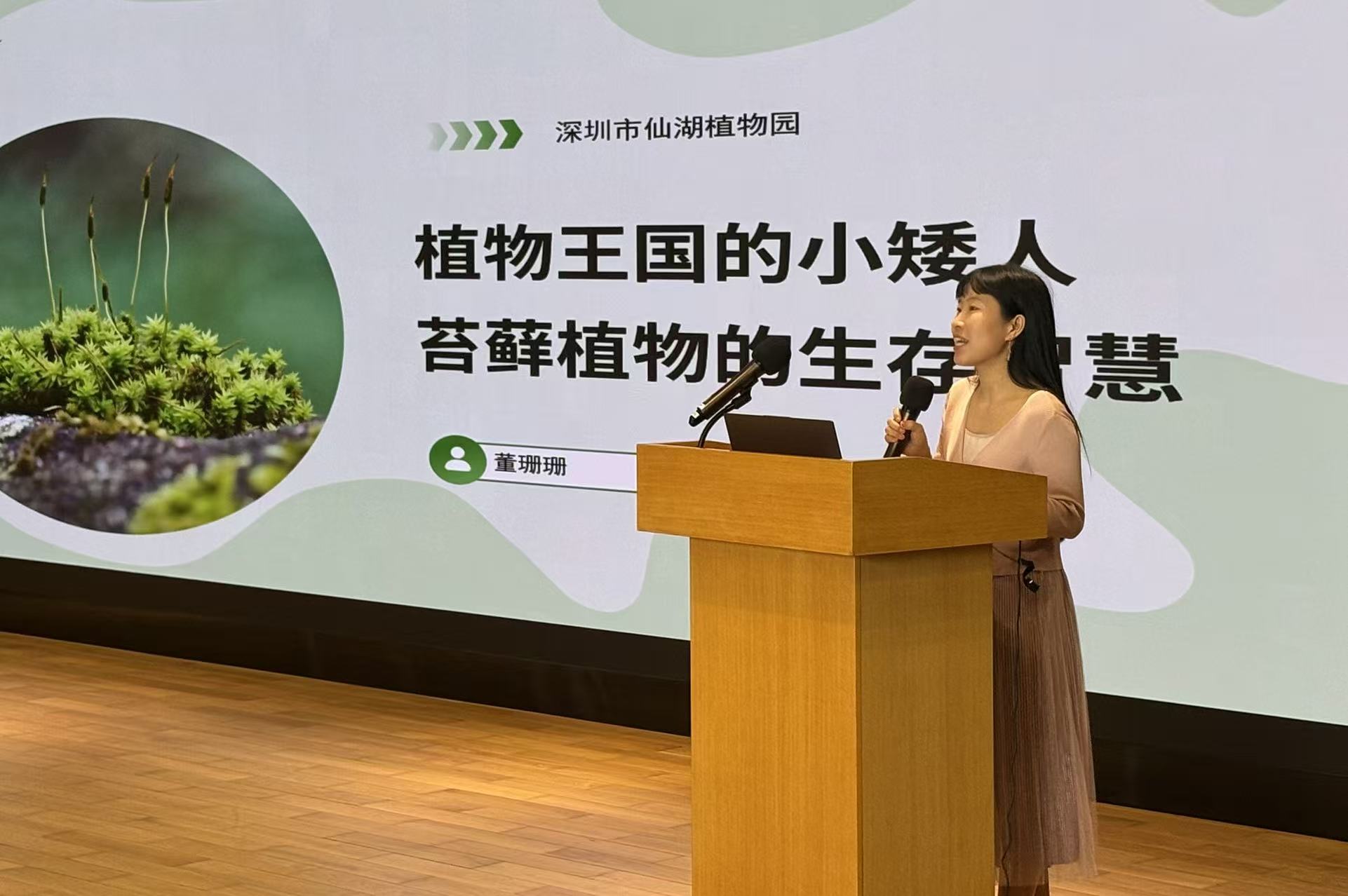 在专家讲座环节,深圳市仙湖植物园董珊珊博士以近期发表于国际顶级期刊《Nature Genetics》(自然-遗传学)的重磅研究成果,开展了“植物王国的小矮人——苔藓的生存智慧”专题讲座,深入浅出地解析苔藓植物的生态价值与科学奥秘,为参训教师带来了最前沿的科学视野。田雅娴工程师则分享了苔藓植物在生物多样性保护中的关键作用,并现场指导教师使用苔藓工具包,将理论知识转化为可操作的教学资源。