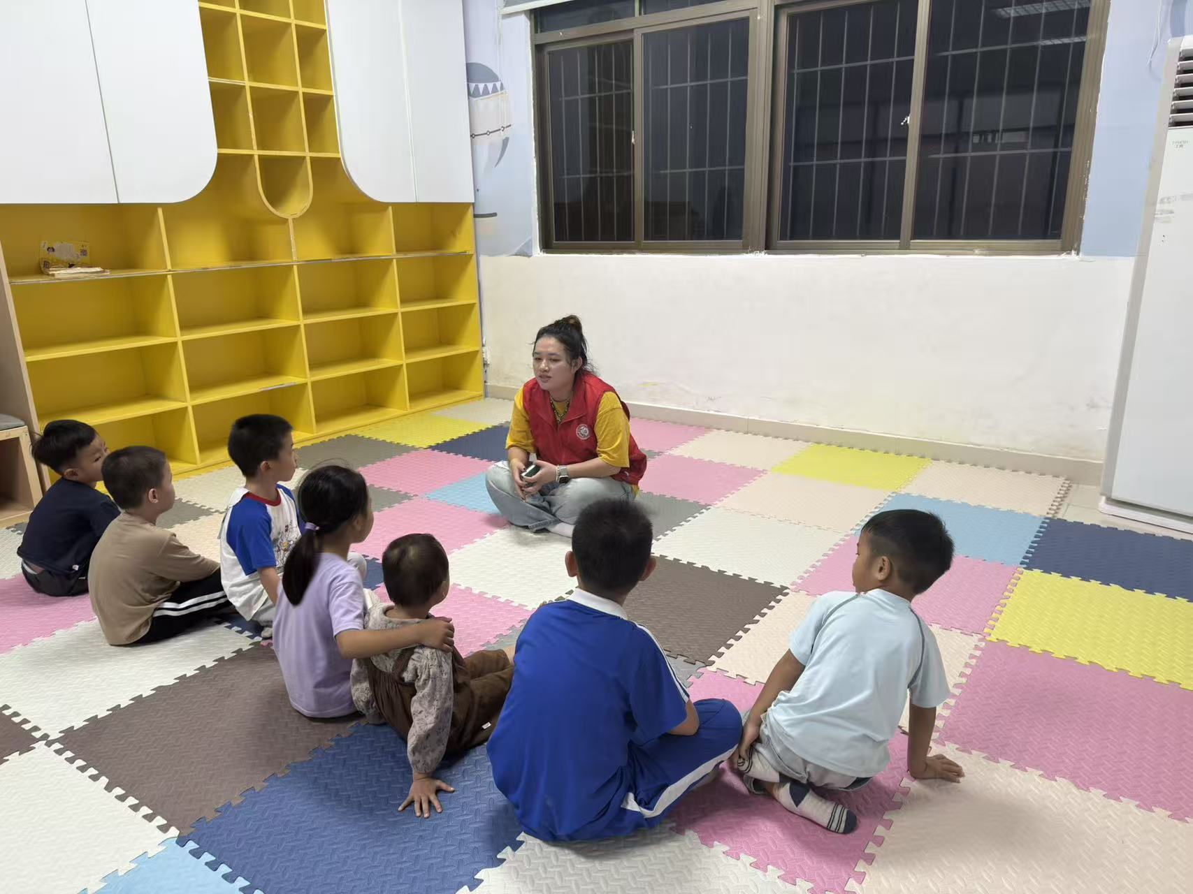 近日,龙华区观澜街道君子布社区党群服务中心依托田心小区党群服务V站儿童乐园空间开展儿童互动启蒙课堂活动,通过一系列趣味性与启蒙性兼具的互动游戏,帮助孩子在快乐的氛围中锻炼专注力、协调力与互动意识。