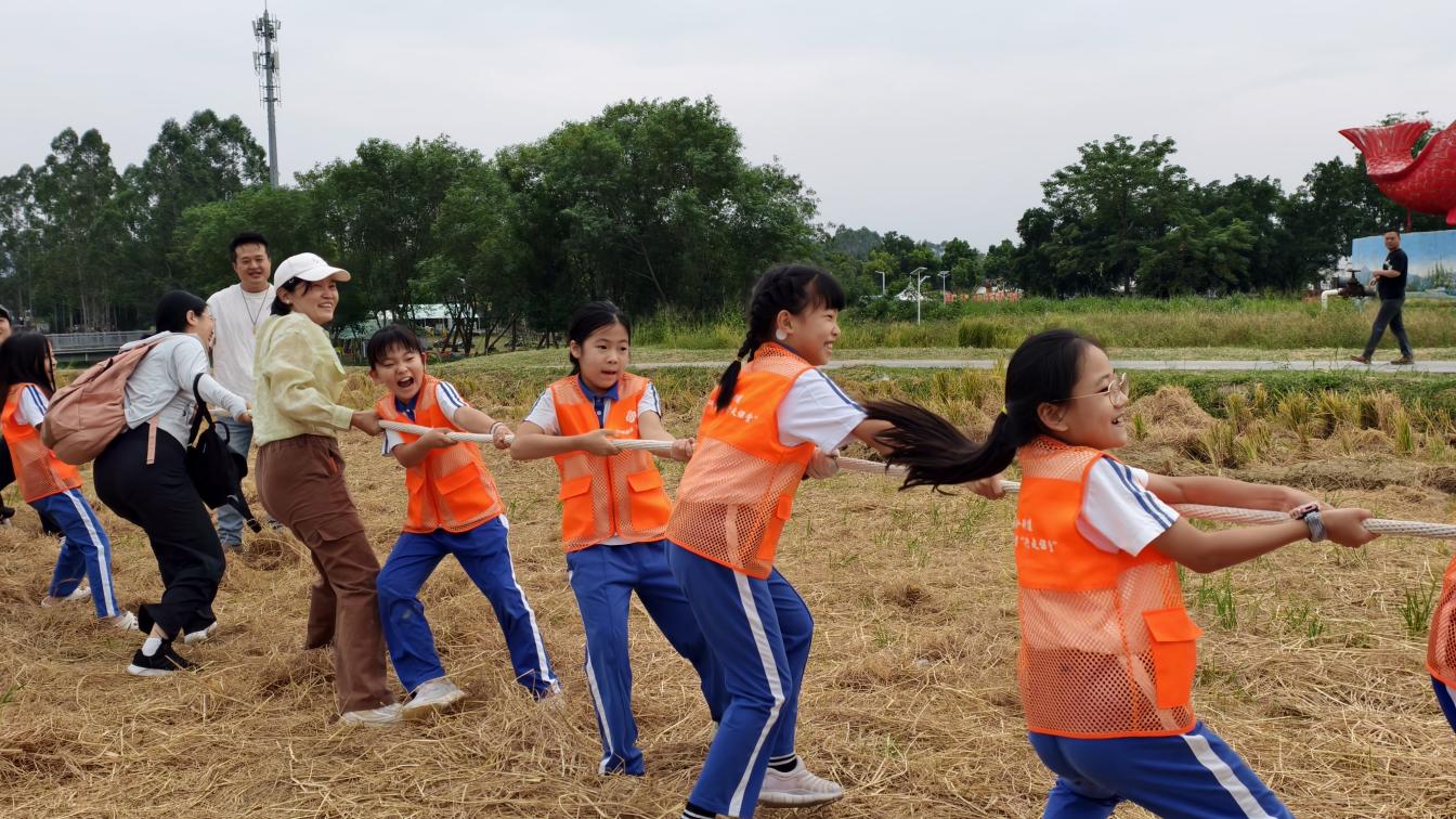 “田园运动会”的拔河比赛点燃全场。田埂上的加油呐喊声此起彼伏。“我们赢啦!”获胜队伍的孩子们相拥欢呼,老师顺势引导:“拔河需要大家齐心协力,保护气候也一样,每个人都出份力,地球就会更美好。”简单的游戏,让“协同”理念在欢笑中传递。