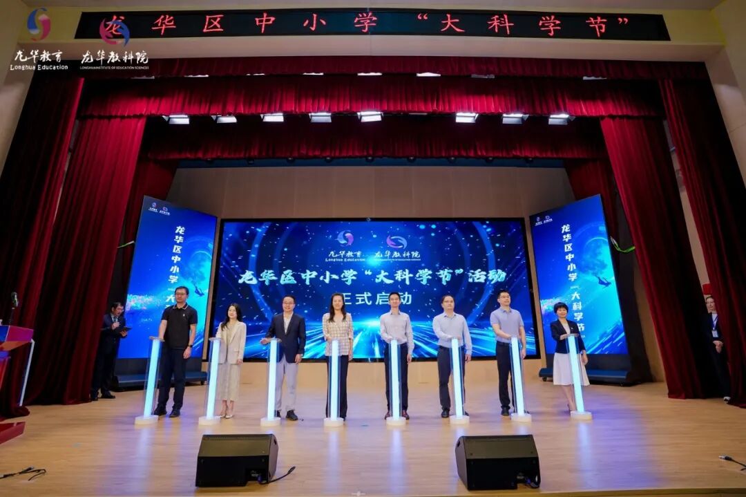 启幕仪式环节中,在全体参会人员的共同见证下,领导们按下能量柱,宣告龙华区首届中小学“大科学节”正式启动。
