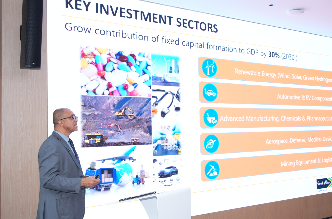 “南非很多行业都在快速发展,包括金融科技、数字经济、新能源汽车以及储能等。”莱斯特·布阿在发言中表示。据了解,6300万人口、4100亿美元GDP的经济体量,以及31%的青年人口结构,让南非呈现出强劲市场潜力与人口活力。而作为通往撒哈拉以南非洲市场的门户,南非享有非洲大陆自由贸易区带来的政策红利,将为中国企业辐射15亿人口、3.5万亿美元GDP的非洲大市场提供了无可替代的战略跳板。