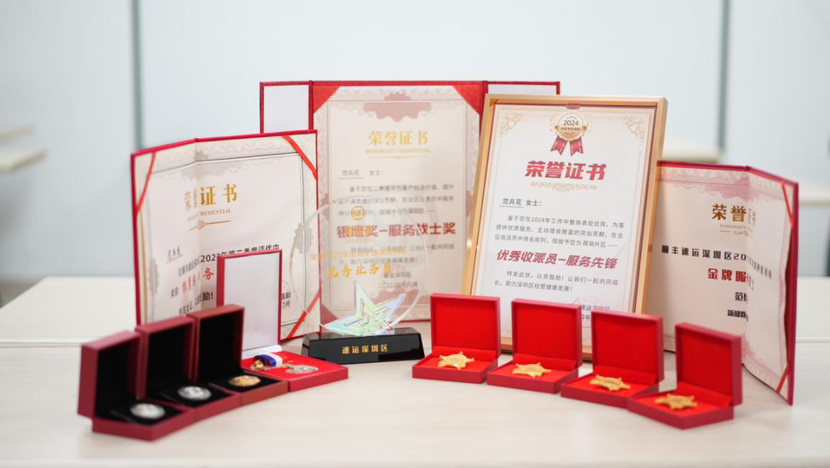 据新塘路营业店负责人王吉林介绍,范兵花已连续两年被评为顺丰优秀员工,多次获评“为你喝彩”网点服务标杆,并荣获2024年三八妇女节“鹏城最美女职工”、金牌小哥等称号。在顺丰内部小哥评价体系中,她凭借长期优异的服务表现、高频客户表扬及稳定业务能力,获得极高评分,成为大家学习的标杆。