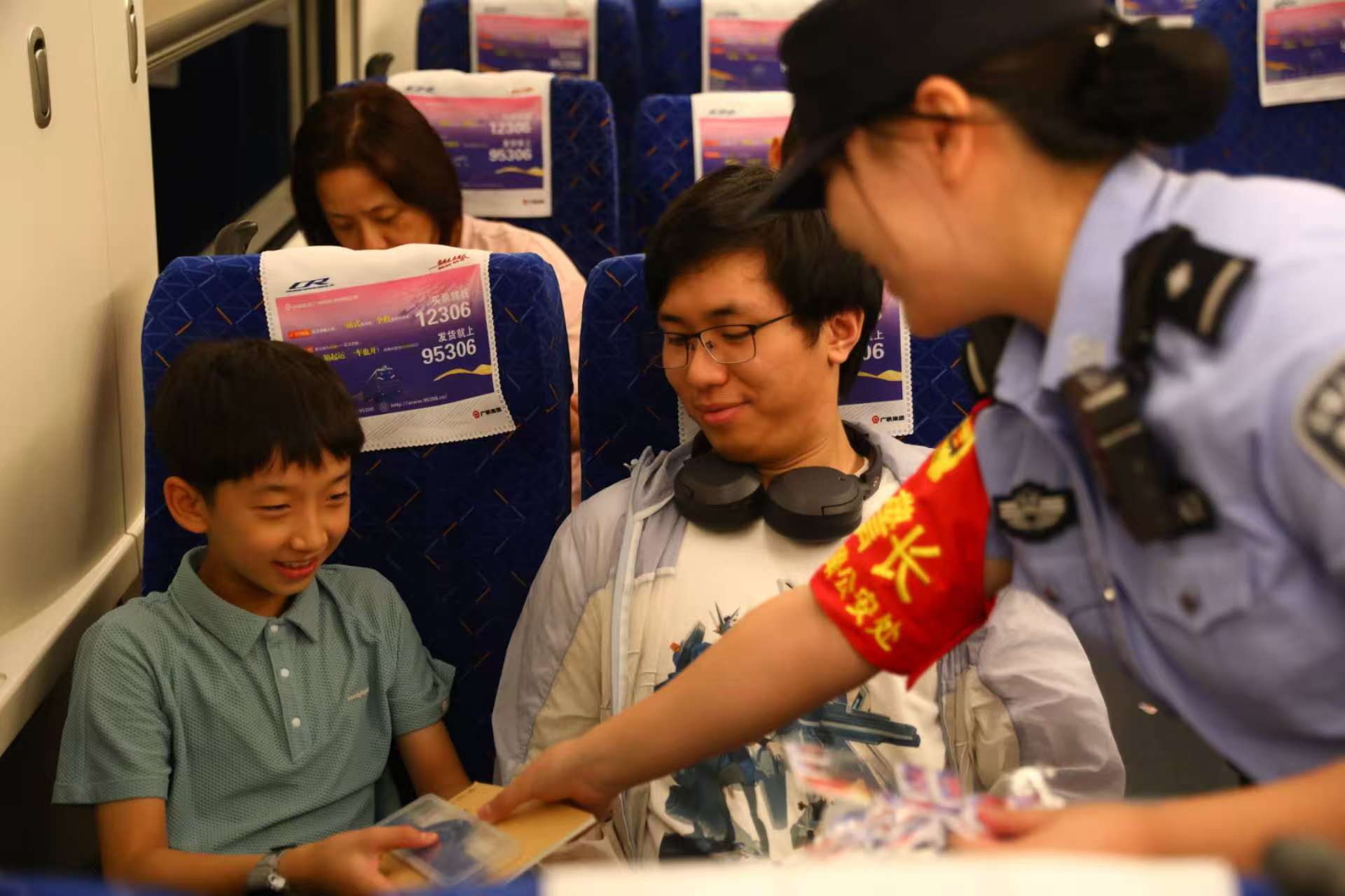 “看到车厢里的警花,我们特别安心。”一名乘车前往香港参赛的运动员在接受采访时说道。为更好地服务赛事相关人员与观赛旅客,“鹏乘枫警”女子乘警组联合铁路客运部门、青年志愿者组建“赛事服务专班”,将暖心的保障服务延伸到流动的列车上,及时为乘车旅客提供赛事信息咨询、应急药品补给等帮助。在观赛旅客集中的列车,乘警组还会开展反诈防骗、消防安全主题宣传,通过案例讲解、互动问答的形式,提醒旅客注意电信网络诈骗等风险,提升旅客的安全意识和自我保护能力。此外,乘警组还定期开展应急处置演练,重点强化人员密集场所疏散、突发医疗救助等场景应对能力,确保遇有情况能够快速响应、高效处置。“我们多练一分,旅客和运动员的出行就多一分安心。”组长余钿表示,警花们已做好充分准备,以最佳状态迎接运动会启幕。
