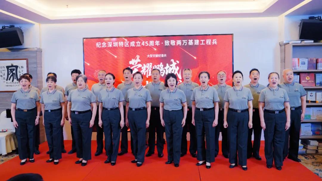 仪式现场,深圳市关爱行动公益基金会·退役军人关爱基金荣誉主席、《荣耀鹏城》总顾问刘坤德作为基建工程兵老兵代表,深情回顾了那段激情燃烧的岁月。广东广播电视台北京节目中心相关负责人代表节目组,向深圳市关爱行动公益基金会赠送牌匾,表达对合作方的诚挚感谢。全体基建工程兵老兵以嘹亮的歌声齐声高唱《基建工程兵之歌》,用铿锵旋律致敬峥嵘岁月。