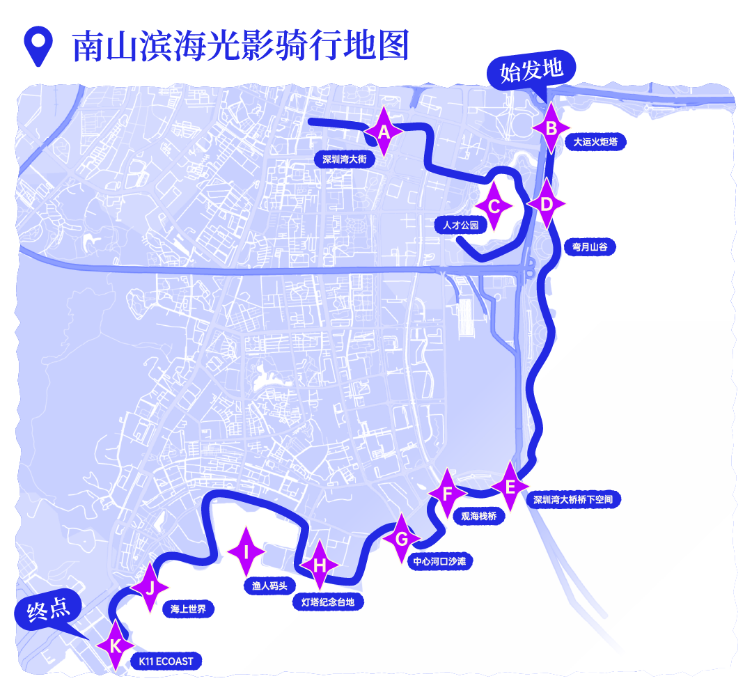 此次活动还将深圳湾滨海休闲带打造成光影海岸线,打造十余处光影节点,借势十五运全民体育热潮,主办方将邀请优秀运动员代表领骑,带领市民穿越深圳湾公园沿线光影打卡点,开启“骑行赏光影”的难忘旅程。
