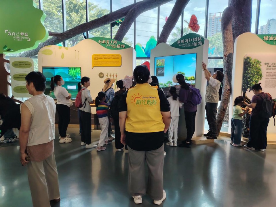 “以前带娃逛展馆总怕他听不懂,这次有讲解引导,他主动找我一起找知识点,还学会了‘红树林是海岸卫士’‘黑脸琵鹭有繁殖羽和非繁殖羽’两个知识点,特别有成就感。”一位阳光妈妈笑着分享,展馆里的生动展陈与探索任务驱动,让生态知识不再枯燥,也让亲子互动更有方向。