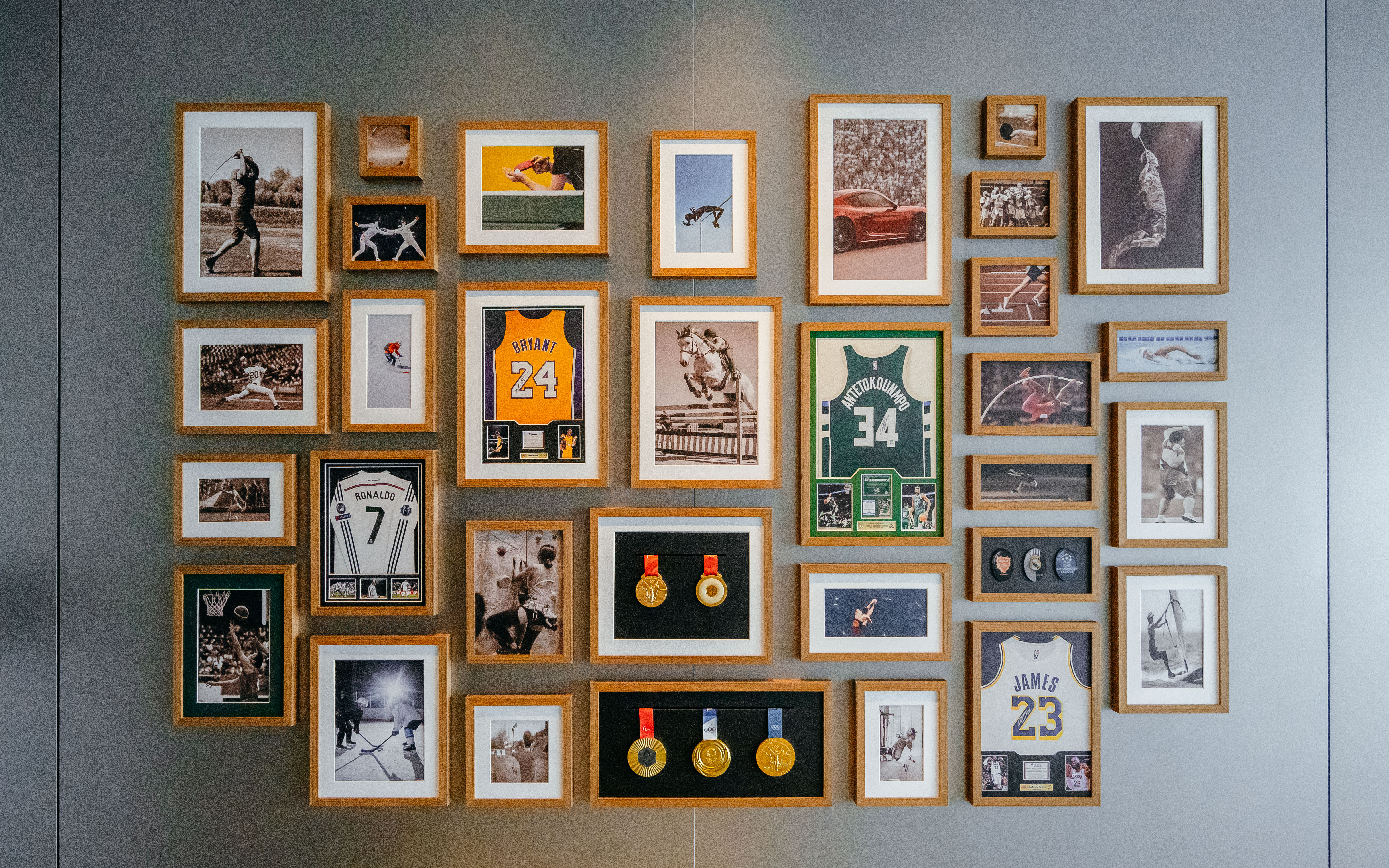 酒店以“体育+酒店”为特色,将运动元素融入各个空间。从全运会吉祥物、奥运帆船、签名球衣到记录荣耀的冠军墙,体育艺术品贯穿酒店各个区域。独具特色的“奖牌”门牌设计,更巧妙呼应了体育主题。