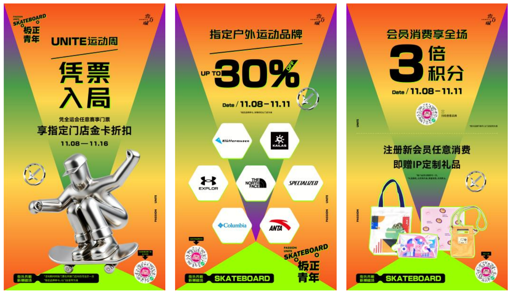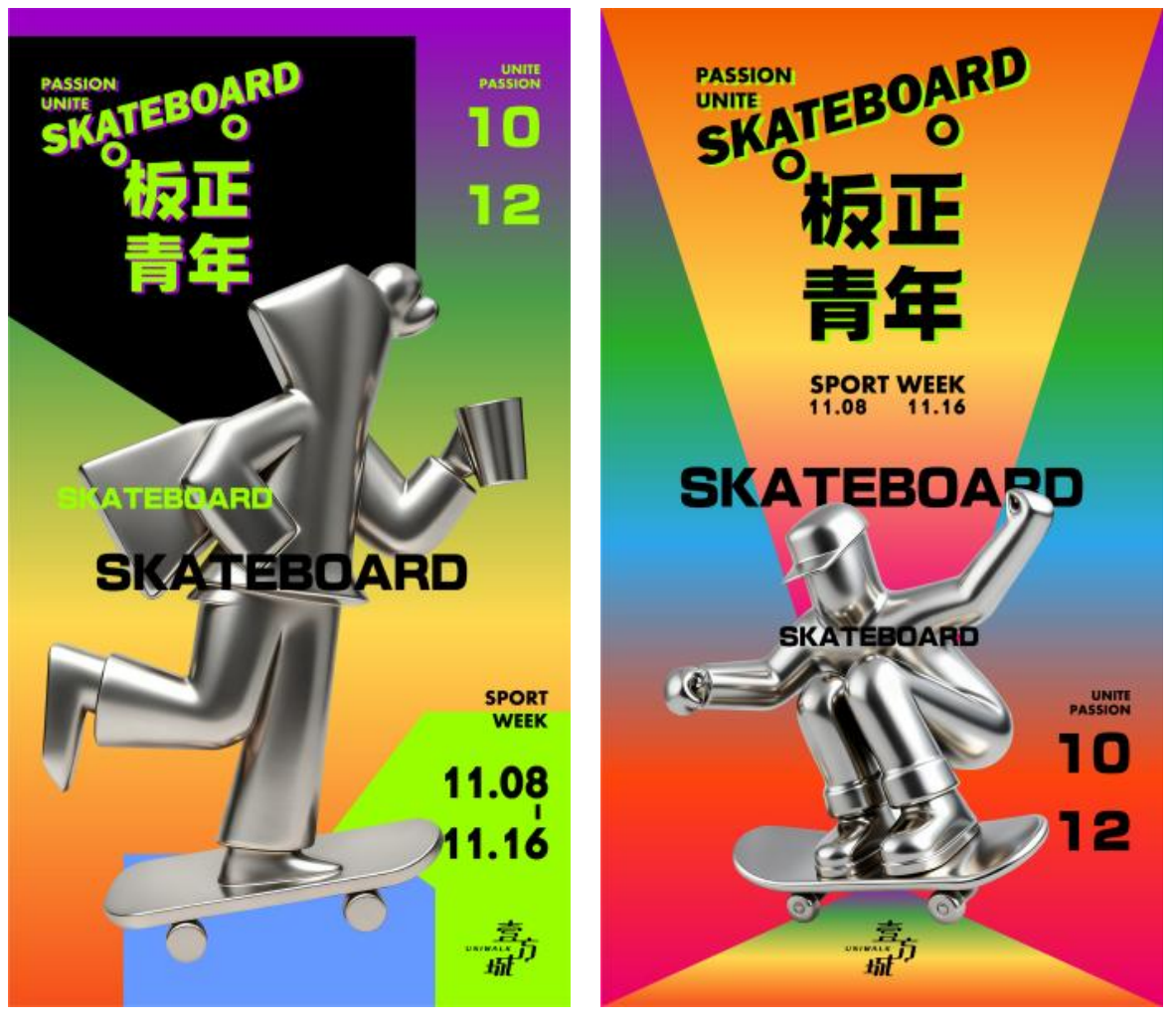 前海壹方城本次板正青年・UNITE运动周,旨在以“轻户外+运动社交”为窗口,联动户外运动品牌构建为大家打造“运动体验+社交互动”深度融合的新型商业场景;同时以滑板这一新潮运动场景化打造专属运动青年、潮流客群的刷街社交场,串联全运激情与都市潮玩,欢迎大家共赴前海壹方城的全运之约,在这场盛大的滑板主题活动中释放活力、收获快乐。