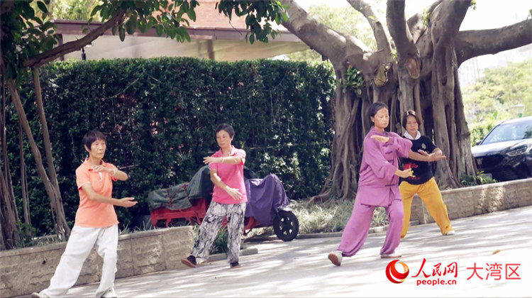 9月8日上午,几位退休人员在公园一角打太极。人民网记者 张荣摄
