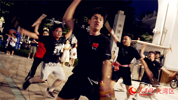9月7日夜晚,一群潮汕青年在猎德桥下练习英歌舞。人民网记者 张荣摄