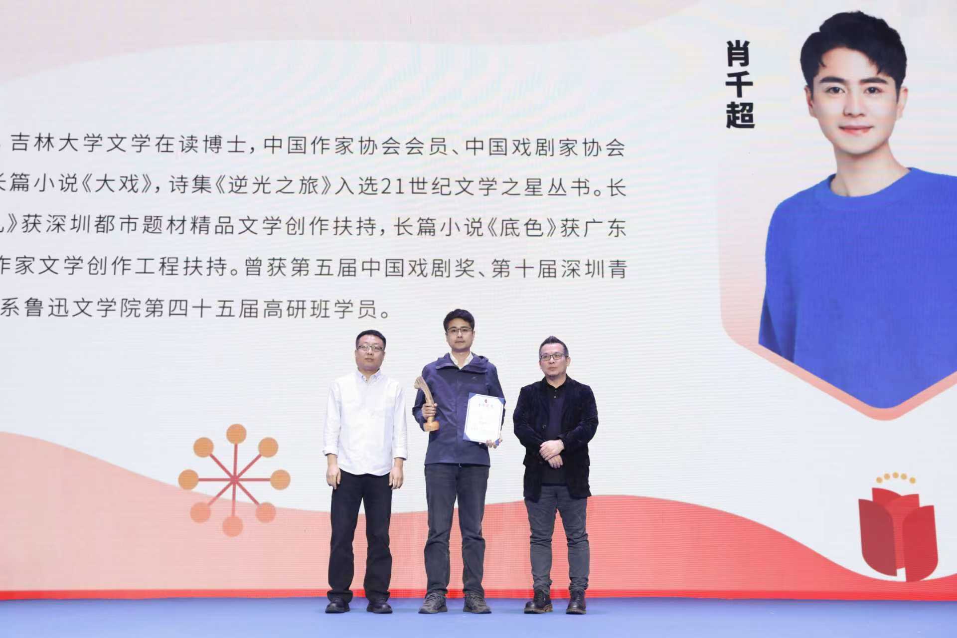 年度致敬奖由著名翻译家胡小跃获得,他曾获法国“文艺骑士”及“文艺军官”勋章,并荣获傅雷翻译奖;年度小说奖得主为鲁迅文学奖获得者王十月,获奖作品为《不舍昼夜》;年度诗歌奖颁予当代女性文学代表作家林白,获奖作品为《身体的雷霆》;年度散文奖则由知名公益人、作家陈行甲摘得,获奖作品为《别离歌》。年度新锐奖获奖者为龙岗本土青年作家肖千超,获奖作品为《上天台》。
